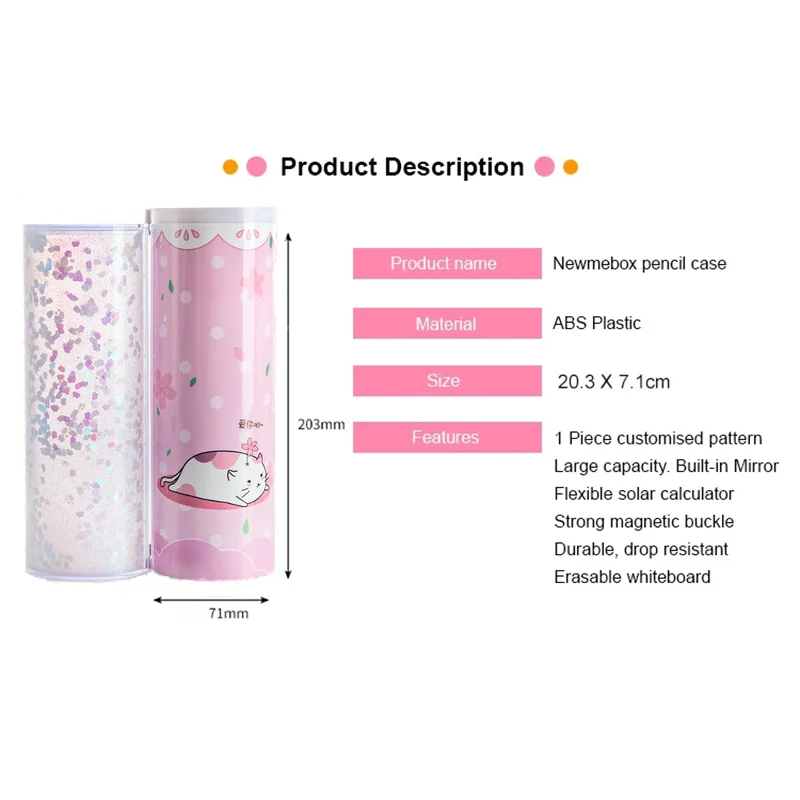 1. Многофункциональная креативная коробка-карандаш подходит для учеников начальной школы, младших старшеклассников, старшеклассников, студентов колледжа, мальчиков и девочек. 2, ручка коробки удлинение: высота: 203 мм, диаметр: 7,1 см, может вместить 15-20 ручек, ластиков, коррекции ручки, точилки для карандашей и т. д. 3. Ферромагнитная модернизация, более мощная 4. Встроенные маленькие зеркала, чтобы осветить вашу красавицу. Добавьте дизайн зеркального ограждения, безопасный, без вреда для рук. 5. АБС-пластик, нетоксичный, без запаха, может использоваться в качестве коробки для очков, коробки для макияжа. 6. Граффити, делать записи, можно стереть в любое время во время письма. Салфетки салфетки (не нужно мочить). Обратите внимание, вы не можете вытереть его ластиком! 7. Принт высокой четкости, не выцветает! 8. Встроенный солнечный калькулятор, без аккумулятора, может работать в светильник, естественный светильник, может быть светильник.