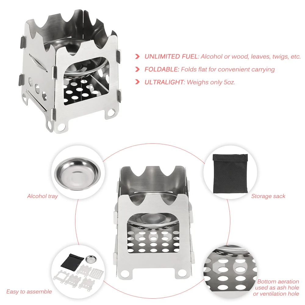 Включает лоток для хранения твердого спиртового топлива.