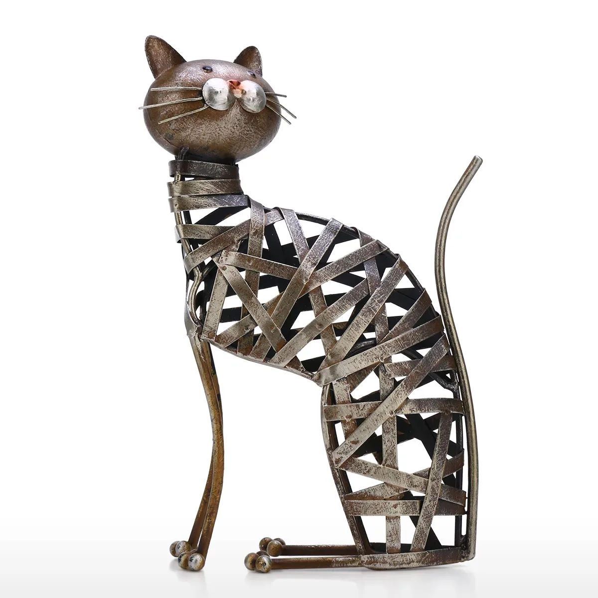 Творчески дизайн:Творчески разработанная плетеная скульптура кошки, сплетенная из железной ленты. Длинные кошачьи Усы на круглой головке, полные привлекательности.