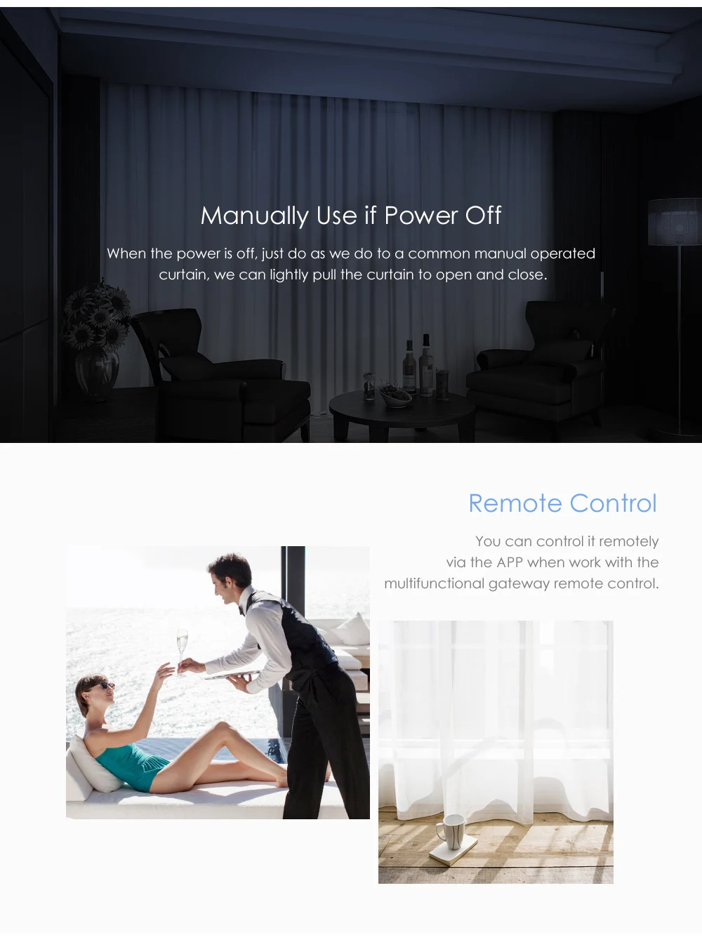 Основные характеристики: ● Сверхмощный бесшумный умный Zigbee двигатель для занавески с электроприводом работает с мобильными приложениями ● Мощный двигатель от сети, анодированный алюминий. Длина Сделай Сам путем резки. Автоматическая Настройка и запоминание лимита на поездку ● Открытие и закрытие через смартфон, планшет, пульт дистанционного управления или голосовые команды из приложения ● Работает от литий-ионного аккумулятора (в комплекте), до 3 - 6 месяцев в режиме ожидания ● Радиочастотный пульт дистанционного управления или провод в другие системы автоматизации. Можно использовать вручную во время отключения питания ● Светильник сенсорный триггер, ручное нажатие для запуска двигателя для автоматической реакции и работы Характеристики: ● Аккумулятор: литий-ионный аккумулятор 3030 мАч (входит в комплект) ● Время работы в режиме ожидания: 3 - 6 месяцев ● Вход: 100 - 240 В, 50 / 60 Гц, 1A ● Кабель: 1,5 м ● Мощность: 28 Вт ● Водонепроницаемость: IP40 ● Макс. Нагрузка: 50 кг ● Скорость перемещения: 12 см/с