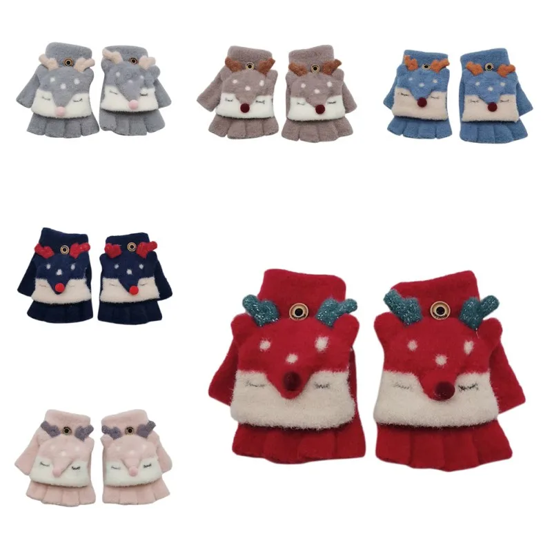 Детские зимние перчатки, детские перчатки для мальчиков и девочек 3-7 лет, теплые детские варежки с рисунком животных для мальчиков, вязаные перчатки XT