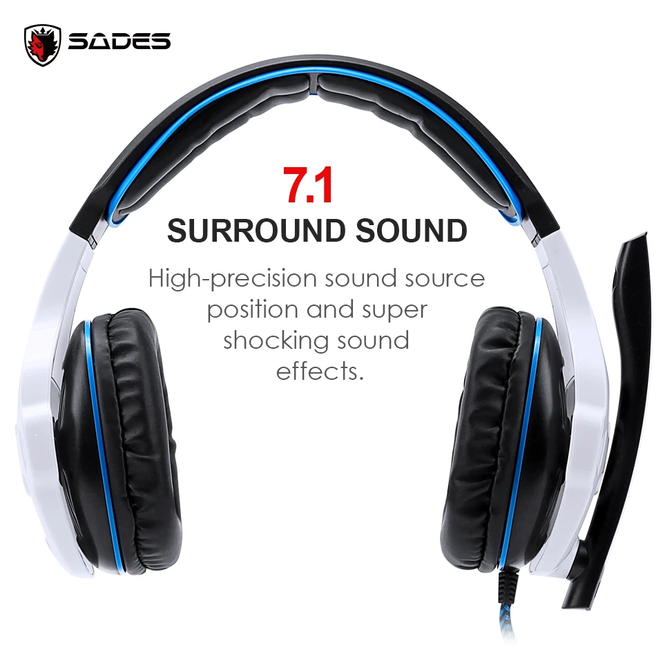Бренд: Sades Модель: SA - 903 Цвет: белый, черный, красный Тип ношения: повязка на голову Характеристики: 7,1 объемный звук Функция: шумоподавление, микрофон, голосовое управление Подключение: Проводное Соединительный Интерфейс: USB Применение: компьютер Интерфейс разъема: USB Длина кабеля: 3,0 м Блок драйвера: 40 мм Частотная характеристика: 20 ~ 20 кГц Сопротивление: 32 Ом Сопротивление микрофона: ≤ 2,2kΩ Входная мощность: максимум 30 мВт