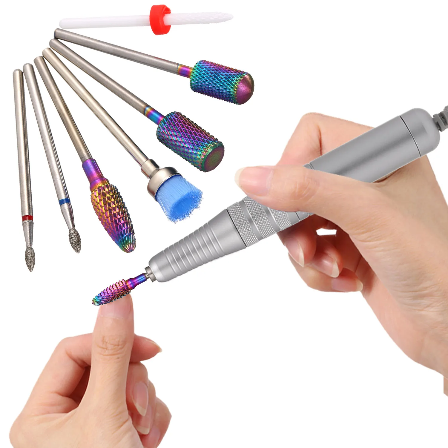 Фрезер для ногтей, сверлильный набор 7 шт. сверлами для ногтей маникюра и педикюра, фрезер Nail Art Инструмент для лака для ногтей, лак для ногтей кисть для удаления пыли