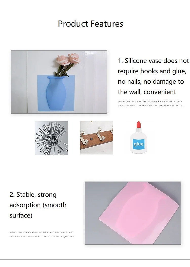 1. Silicone vase does not require hooks and glue, no nails, no damage to the wall, convenient
