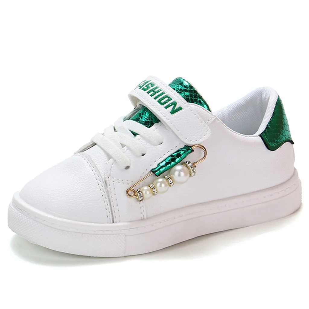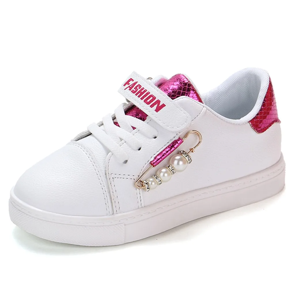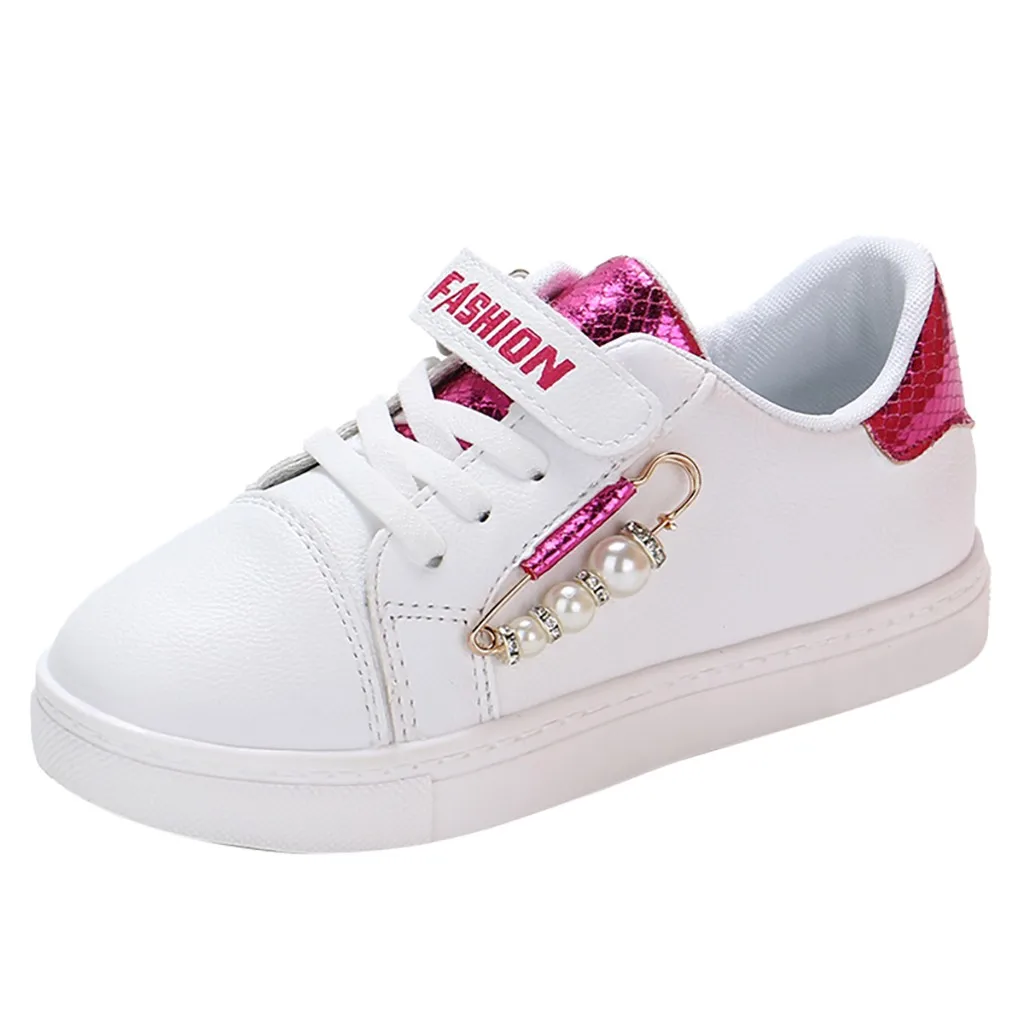 Детская одеждаДетская спортивная обувь принцессы на плоской подошве с жемчугом для маленьких девочек