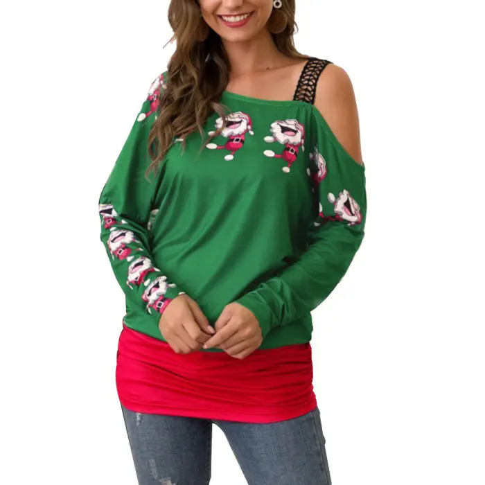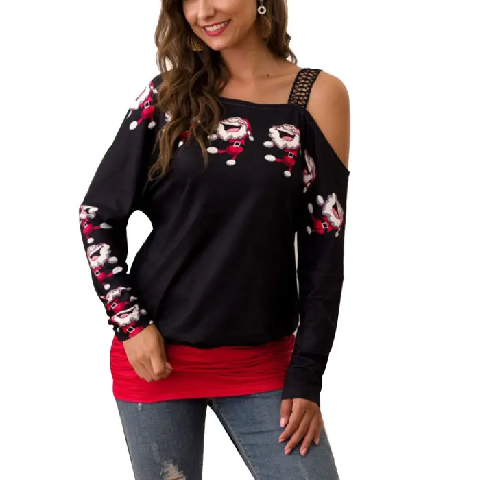 Тип одежды: Женская рождественская блузка с принтом, Длинные Топы с длинными рукавами и открытыми плечами