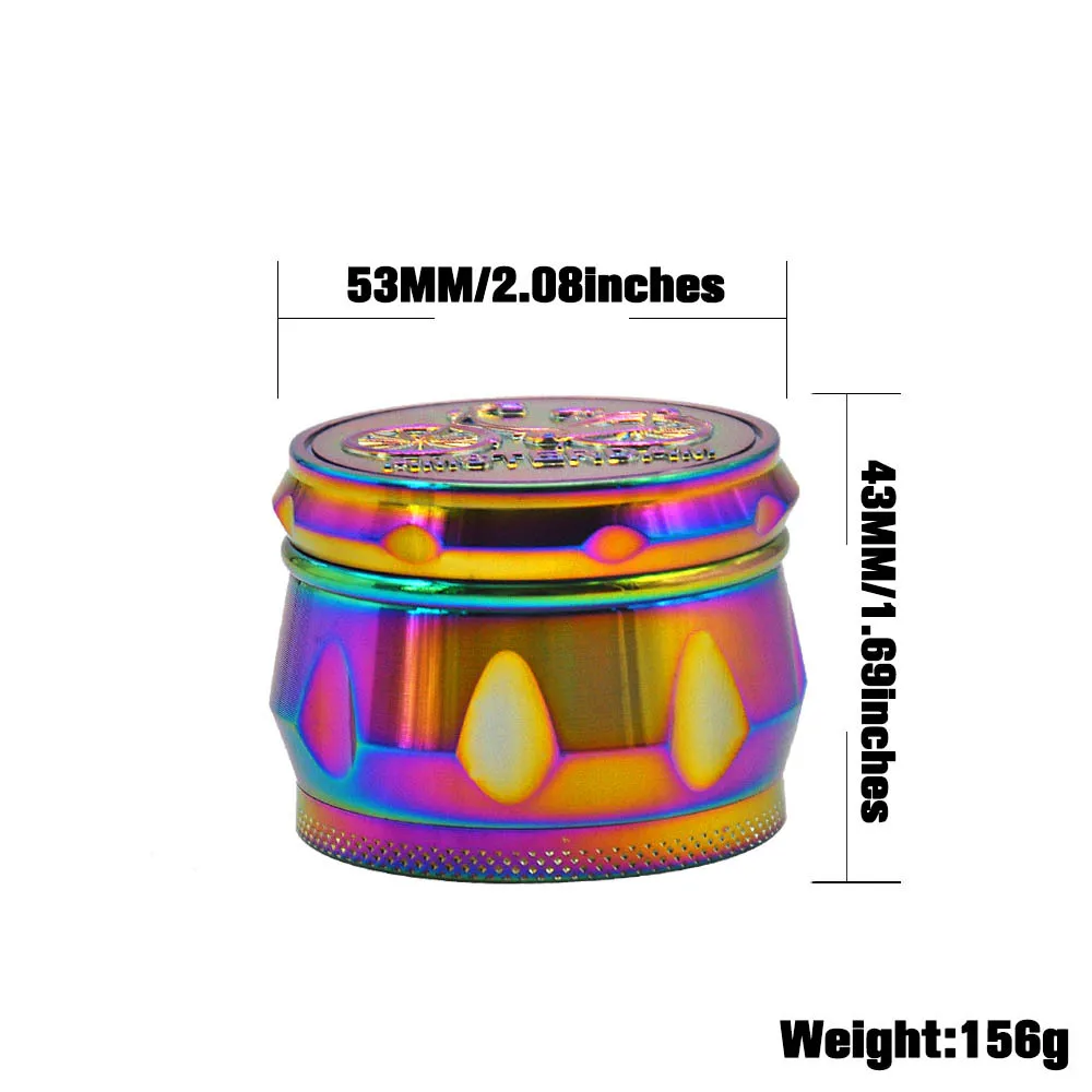 Материал: высококачественный цинковый сплав Диаметр: 53 мм/2,09 дюйма Высота: 43 мм/1,69 дюйма Узор: Я люблю/маленькие листья/Лев/ХХХ/велосипед (5 моделей полностью) Цвет: радуга (как на фото) Использование: для резки табака Вес нетто: 156 г/шт. Слоев: 4 слоя Зубы: острые алмазные зубы