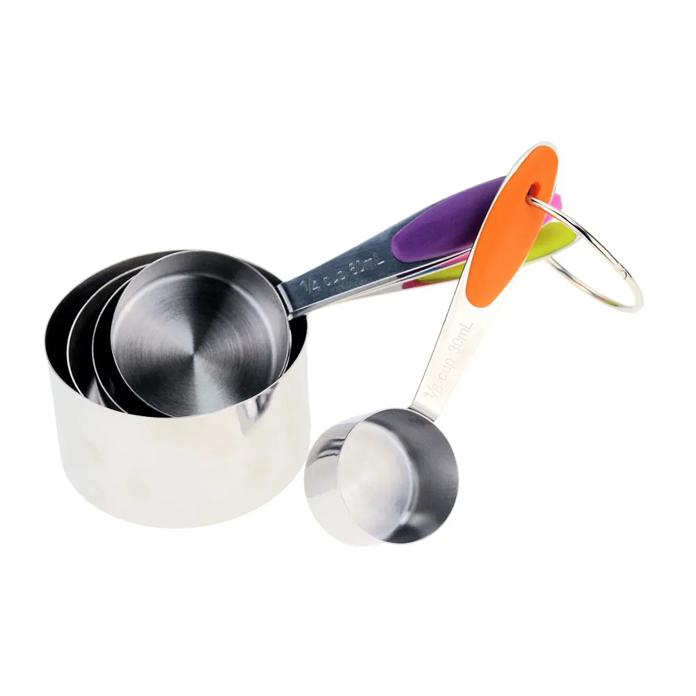 Набор мерных стаканчиков и ложек, нержавеющая сталь с силиконовой ручкой-идеальный Измерительный набор для приготовления пищи и выпечки