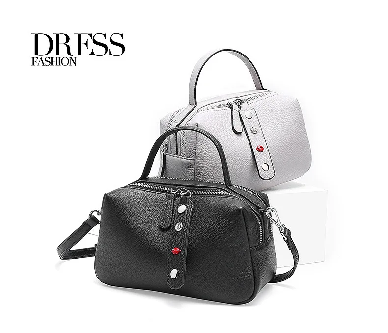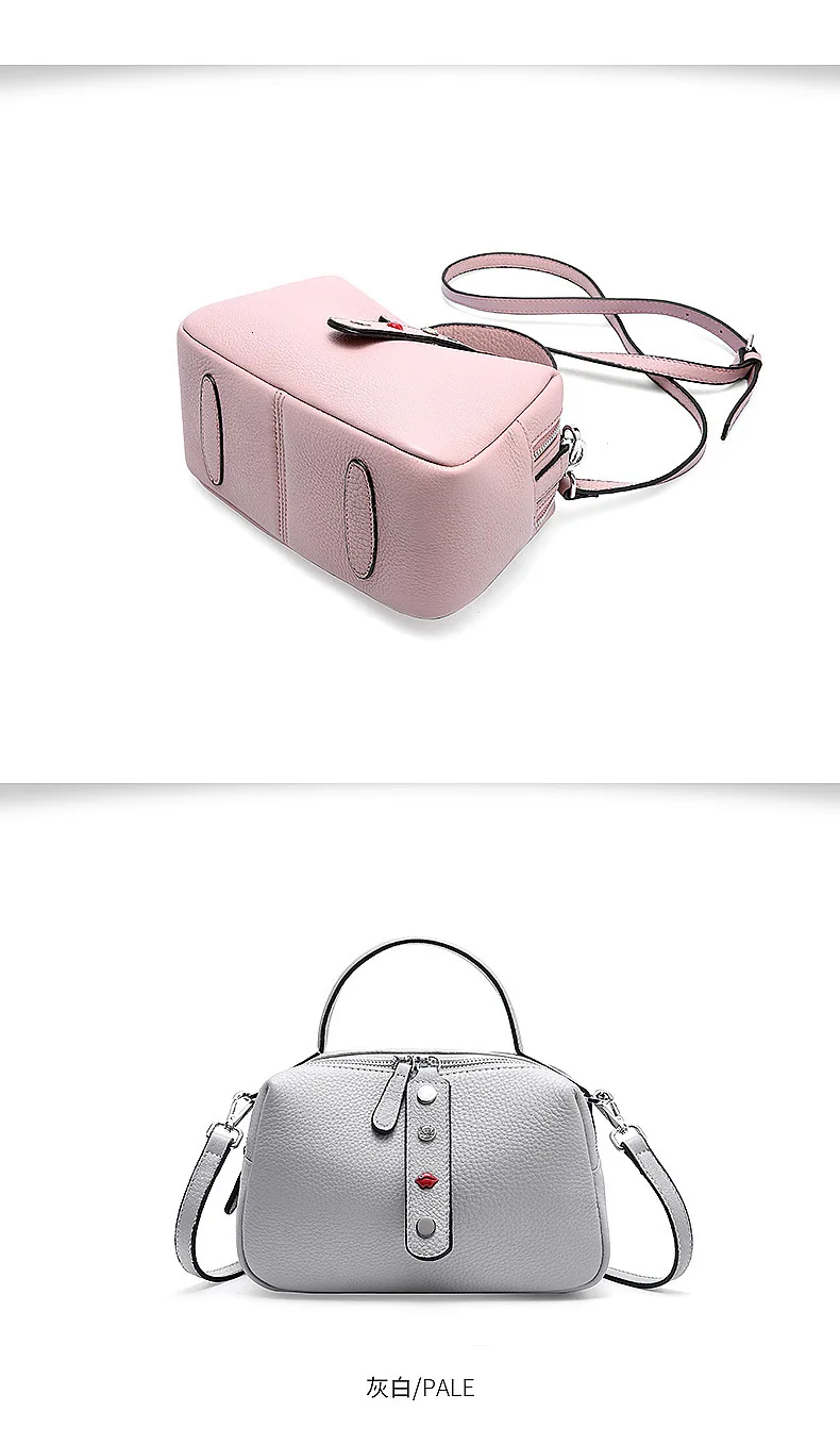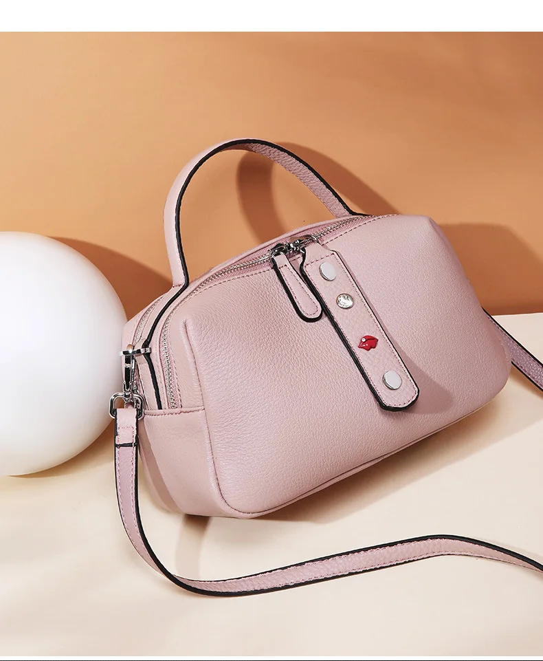 Fashion Genuine Leather Women Top-handle Bags Double Zipper Crossbody Messenger Bag Small Female Shoulder Bag Casual Handbags