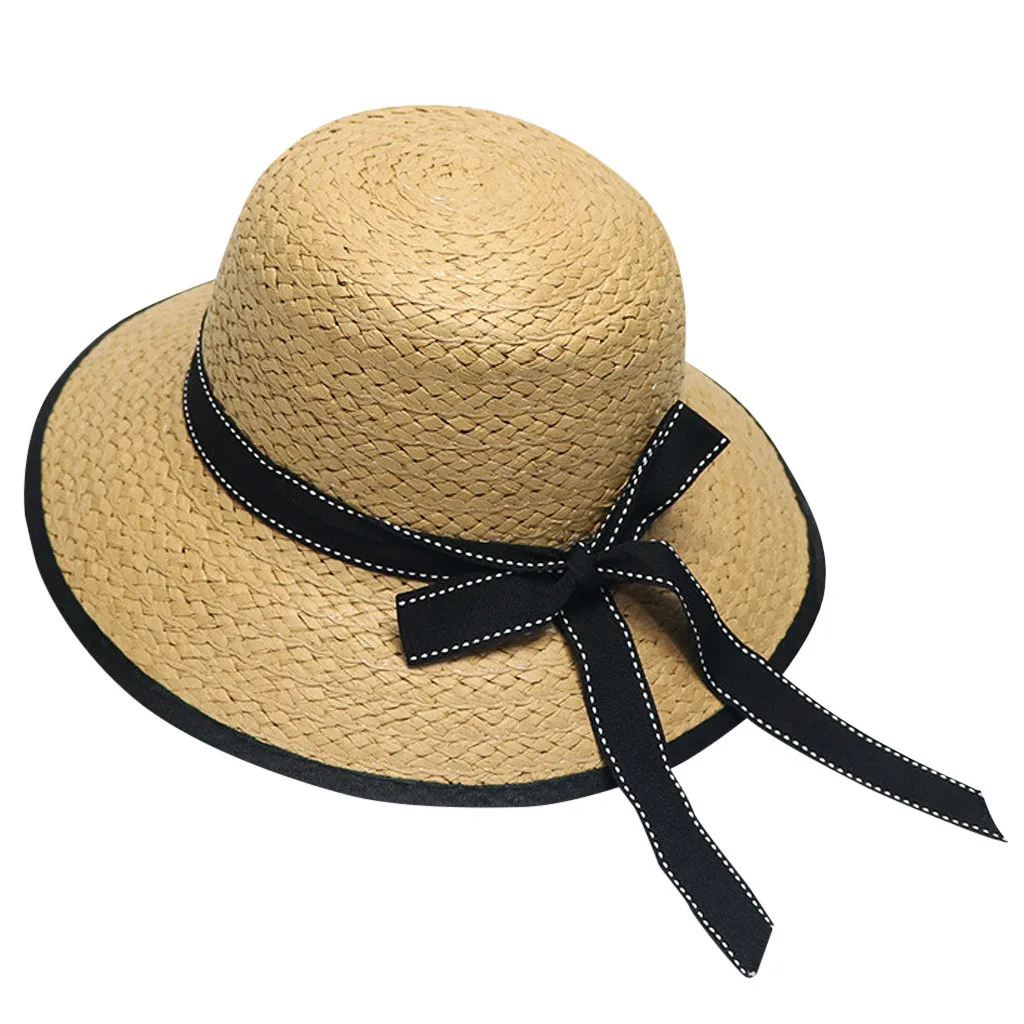 DescriptionЛетняя Пляжная соломенная шляпа от солнца с бантом для родителей и детей, женщин и маленьких девочек