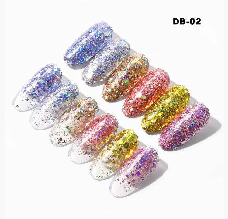 Новое поступление конструкции Дизайн: блестящие Блестящие Блестки для ногтей, тонкие хлопья, украшения Цвет: Золотой/розовое золото/Holo AB/радужный/розовый/синий/фиолетовый/желтый/красный/цветной Посылка: 1 коробка украшения для ногтей