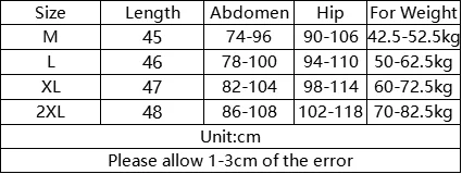 2. Пожалуйста, внимательно проверьте таблицу размеров перед покупкой товара.