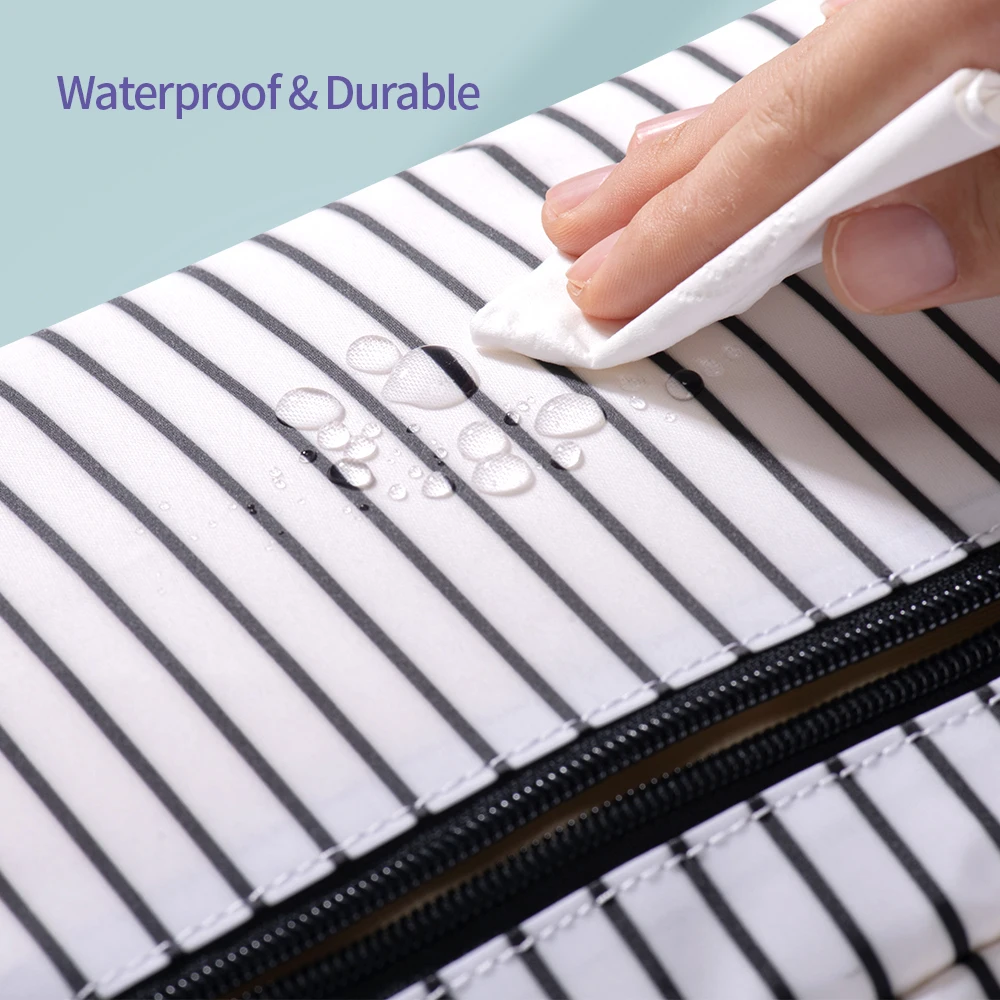 Сумка для подгузников изготовлена из водостойкого материала высокой плотности, полностью водонепроницаемого, экологически безопасного и высококачественного, легкого, легко моется и протирается, очень прочная.