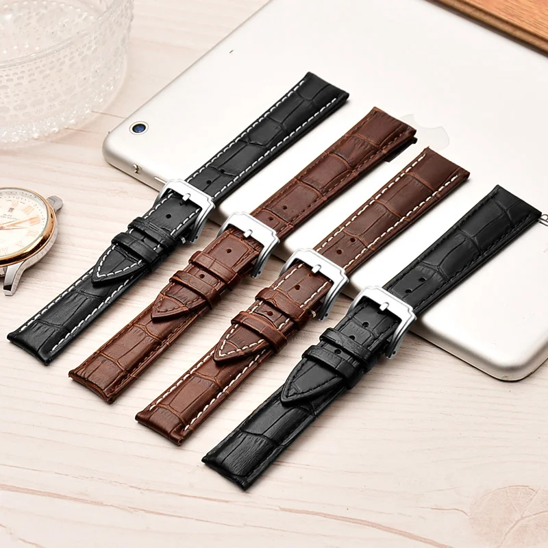 Роскошный топ Класс во-первых Слои натуральная телячья кожа ремешок для часов серебряной пряжкой застежка ремешок для наручных часов замена на высоком каблуке 16 мм 24 мм ремешок пояс с инструментами