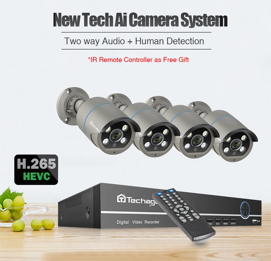Techage 4CH 1080P IP камера система Двусторонняя аудио 2MP Ai тело человека обнаружения Открытый водонепроницаемый дом безопасности POE камера комплект