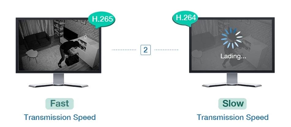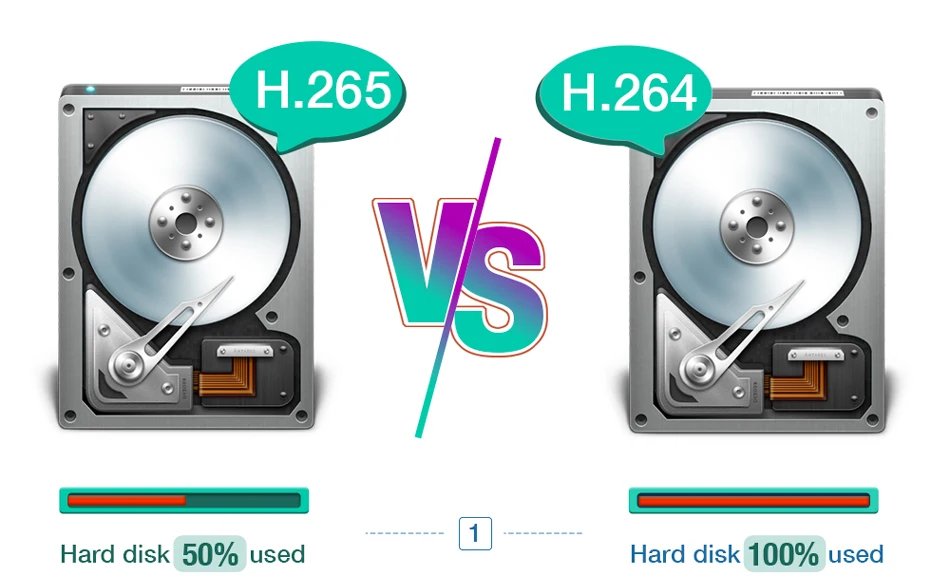 H265 более четкий, HD разрешение предлагает вам лучшее качество изображения в более низкой скорости. Экономьте больше места для хранения, вы можете уменьшить размер файлов 40%-50%, сэкономить место для хранения HDD и снизить стоимость покупки.
