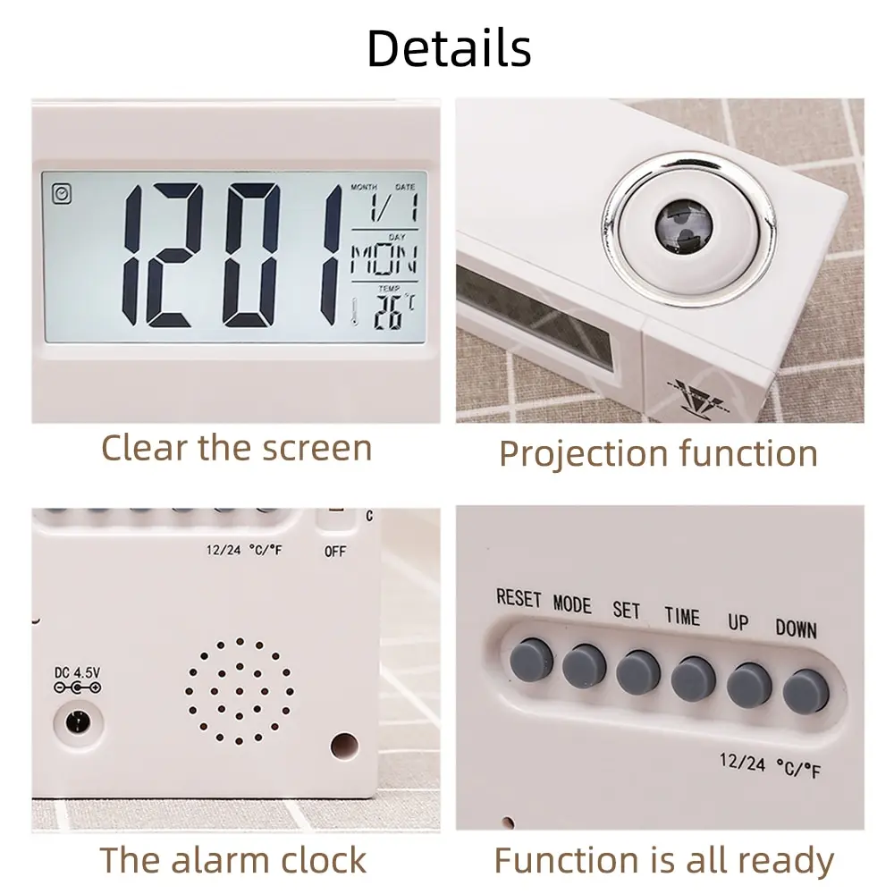 1. Время проекта: время проекта на ваши стены или потолок, так что время всегда будет в полном видении. Очень ясно, чтобы посмотреть, но это не будет беспокоить вас во время сна. Предложенный с радиусом действия на потолке или стене составляет 3,3 ~ 9,8 футов (1 ~ 5 м).