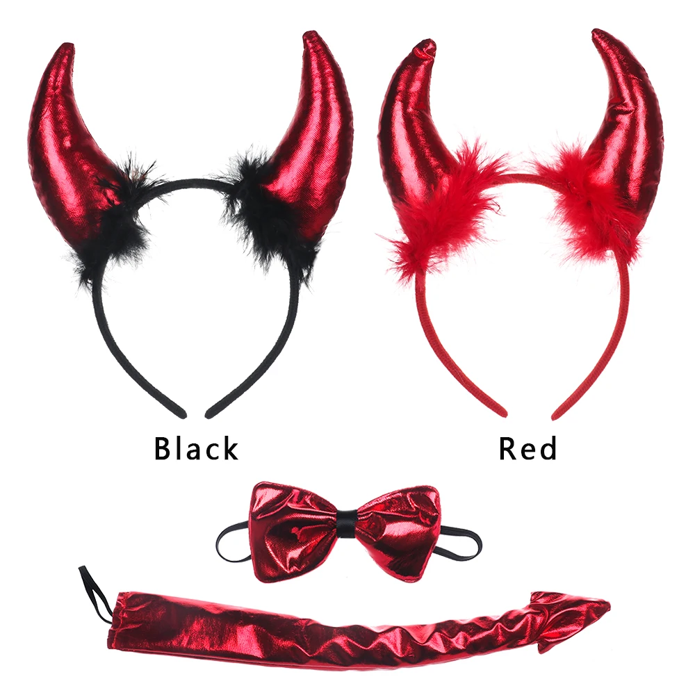 3 шт. Новинка, повязка на голову дьявола, карнавальный костюм, рога демона, реквизит для волос, украшение для волос, повязка на голову с бантом, зажим для волос для взрослых и детей