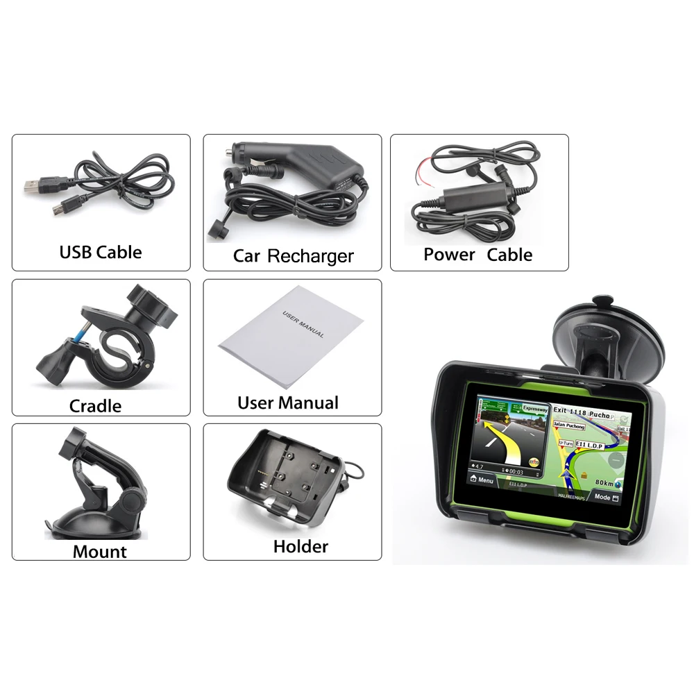 Эта gps-навигационная система мотоцикла (которая также может использоваться с транспортными средствами) состоит из 4,3 дюймового сенсорного экрана, который обеспечивает удобный интерфейс, водонепроницаемый, ударопрочный и пыленепроницаемый.