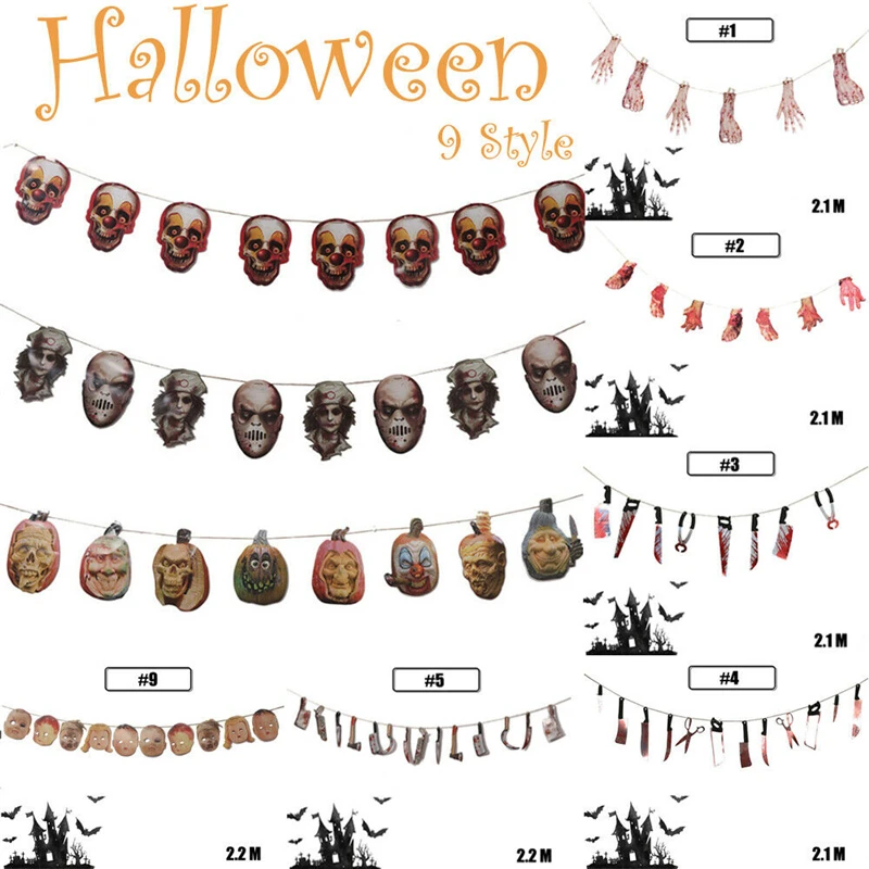 Spooky Хэллоуин вечерние с привидениями дом висячая Гирлянда Вымпел Баннер сломанные пальцы крови нож тянуть цветок вечерние декор кулон