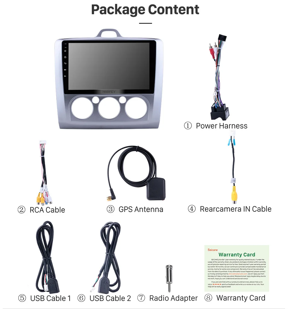 ·Резервная камера: она добавляет резервную камеру для автоматического переключения на изображение парковки во время заднего хода. Этот вариант включает в себя водонепроницаемую и камеру ночного видения, которая будет установлена в положение номерного знака вашего автомобиля и кабели для его подключения. Проводная камера заднего вида по умолчанию. Если вам нужен беспроводной, пожалуйста, отправьте нам сообщение после размещения заказа.