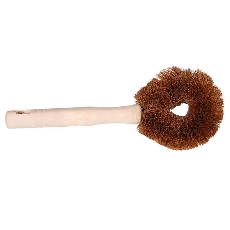 Кокосовая посуда из волокна с длинной ручкой легко очищает тарелки, миски, чашки, кружки и другие посуда и изделия из стекла.
