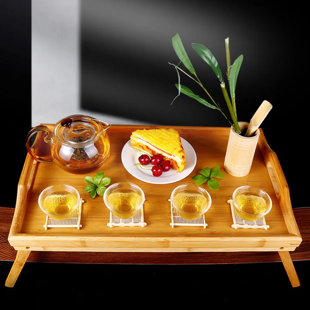 -Изготовлен из высококачественного бамбука, этот поднос для кровати экологически чистый, без запаха, устойчивый к коррозии, прочный и долговечный в использовании.