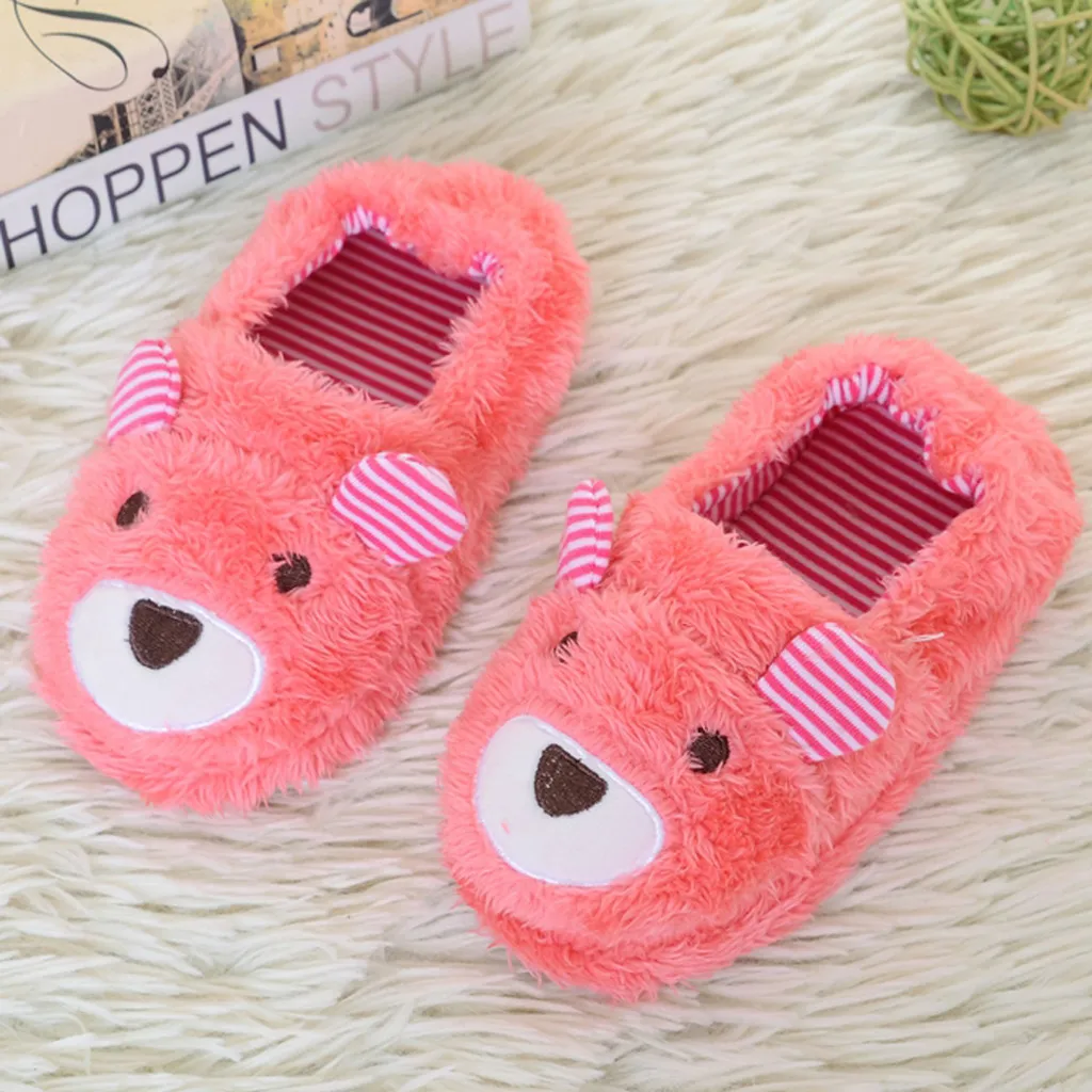 Кроссовки для малышей на осень и зиму, детская теплая обувь с мультяшным медведем для мальчиков и девочек, мягкие плюшевые тапочки на подошве, 1 год, 2019