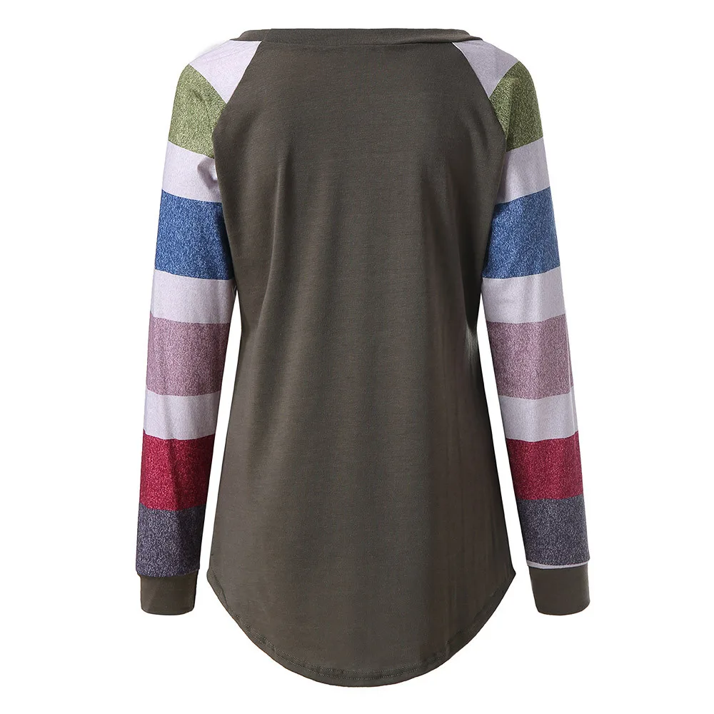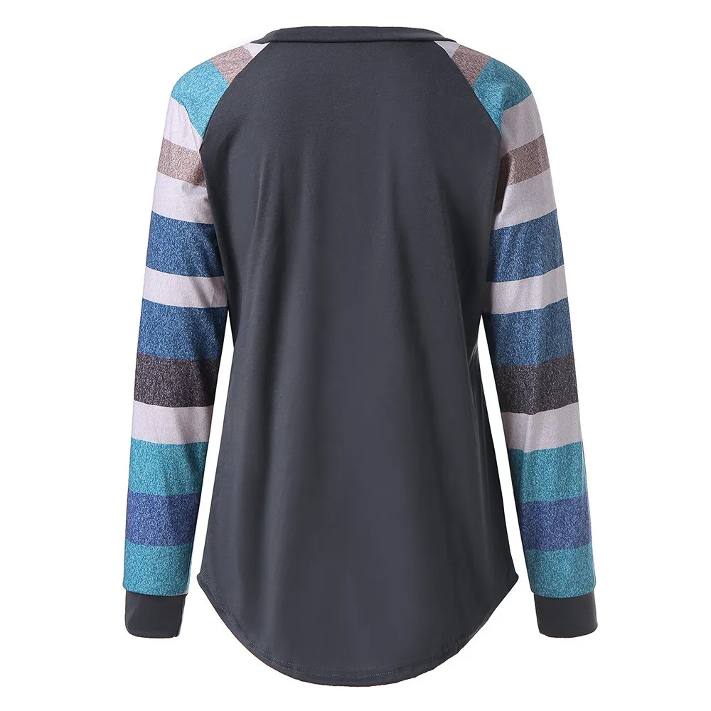Женская блузка для кормления грудью в полоску с длинным рукавом и круглым вырезом