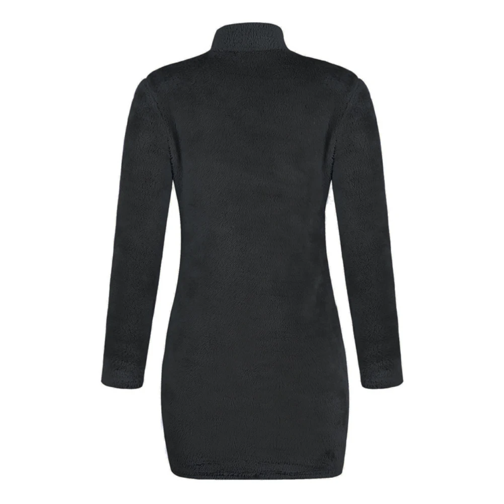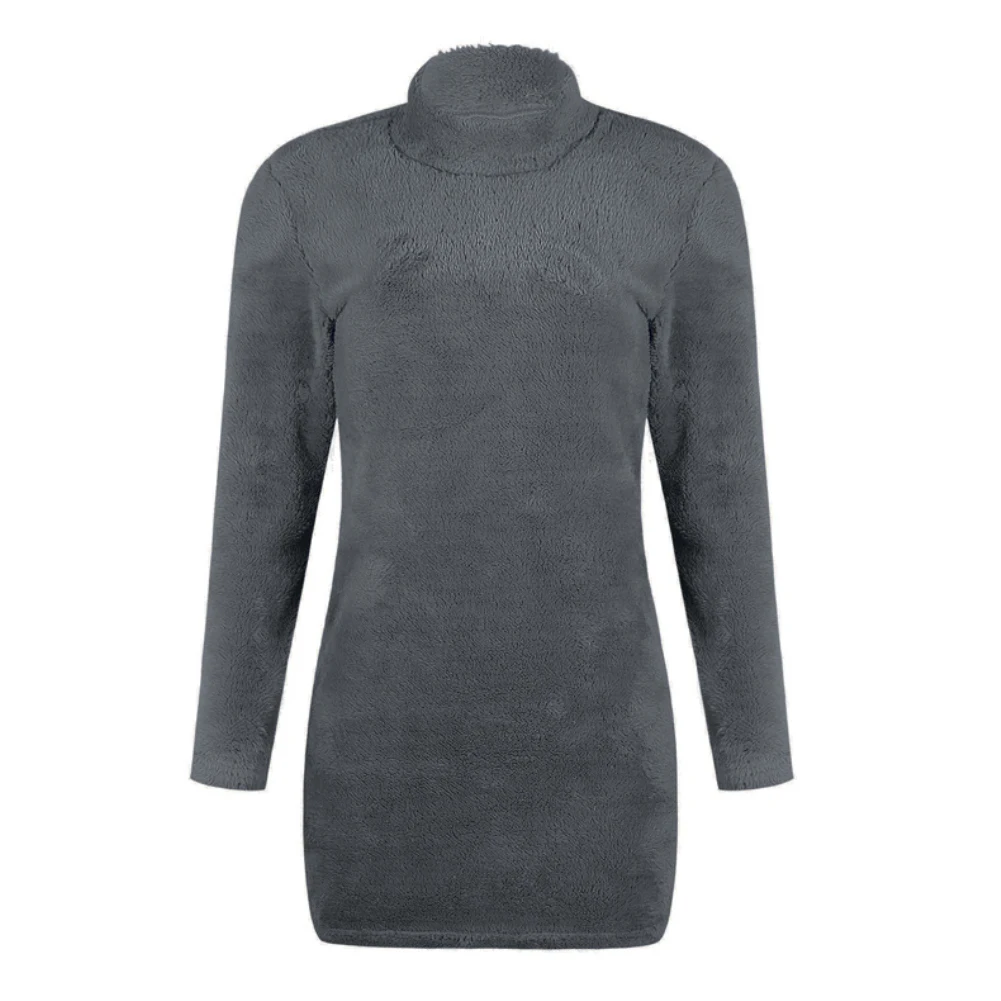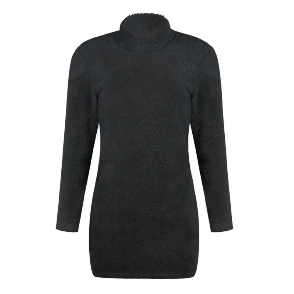 Женское осенне-зимнее однотонное сексуальное мини-платье с высоким воротником и длинным рукавом