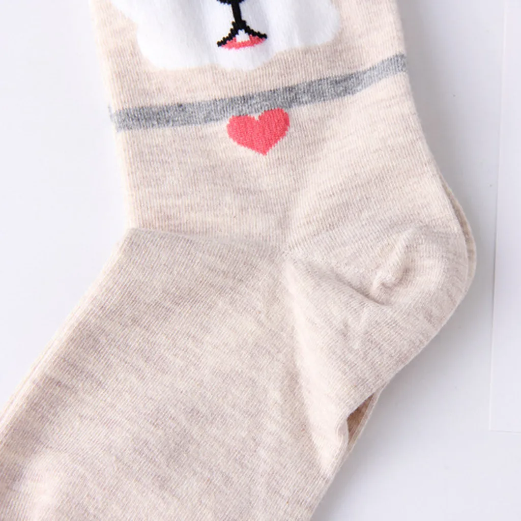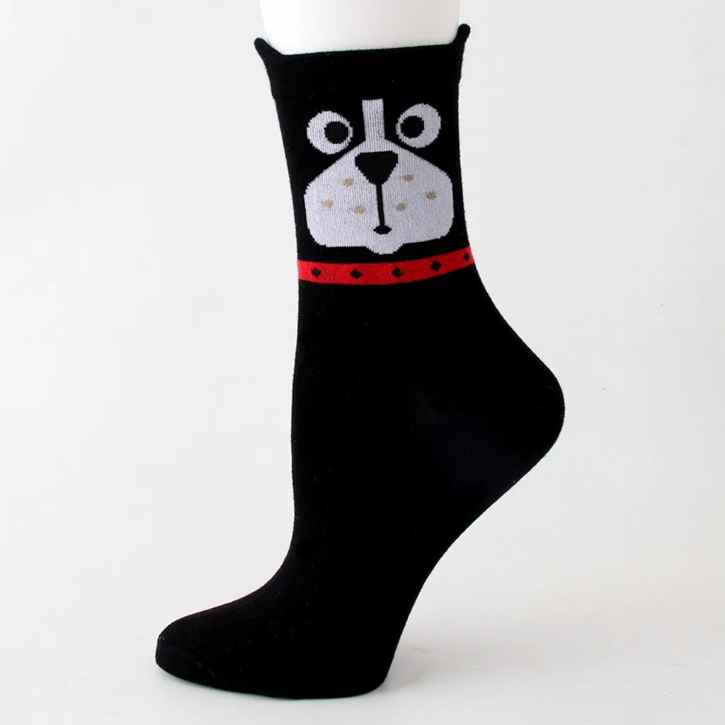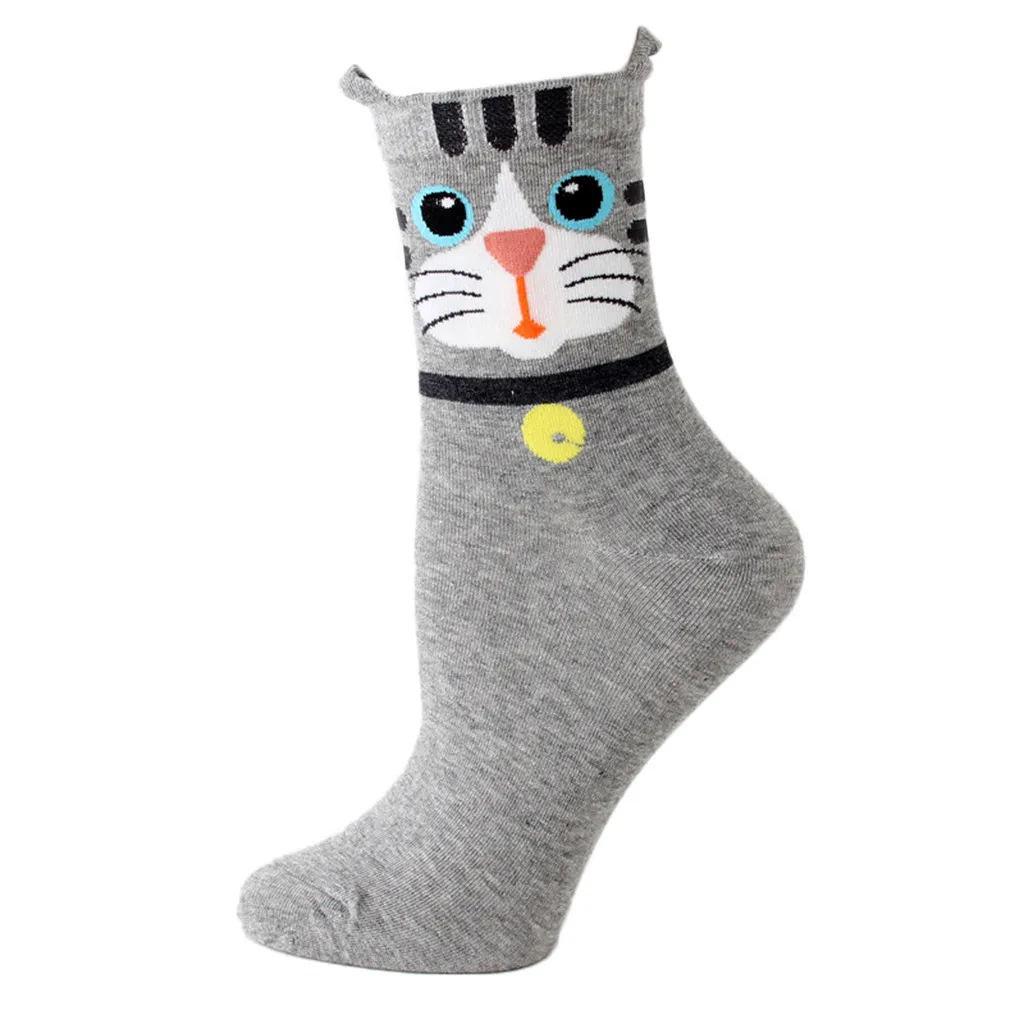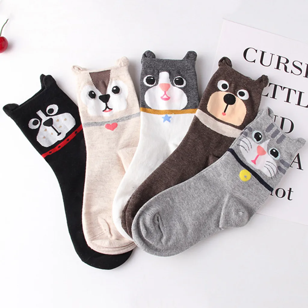 1 пара женских хлопковых носков с кошачьими ушками и животным принтом, женские зимние носки