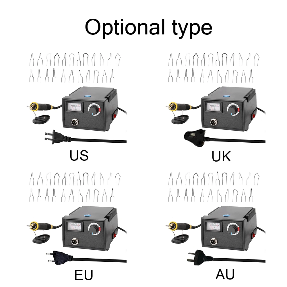 Это своего рода профессиональная пирографическая машина, с универсальной профессиональной тонкой нагревательной ручкой и 23 маленькими электрическими нагревательными головками.