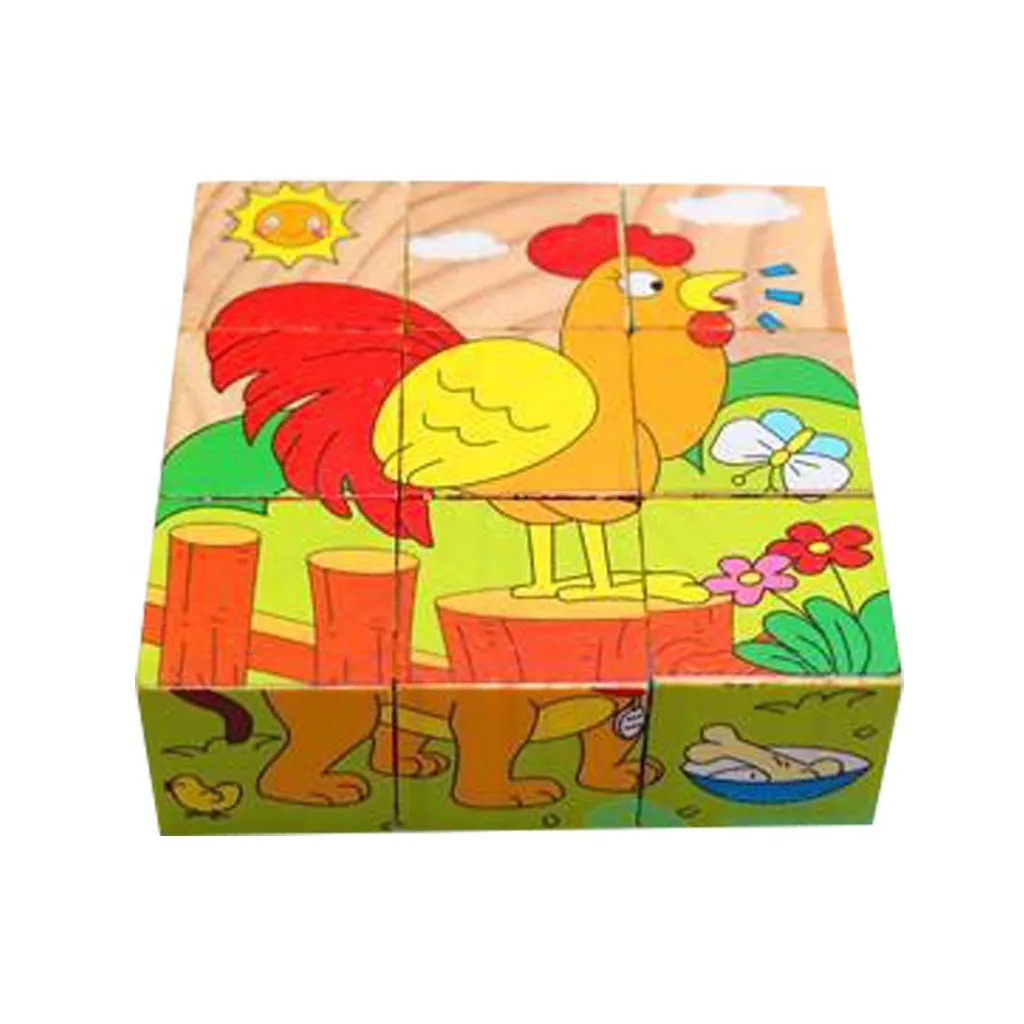 1x Детские игрушки деревянная 3D головоломка девять стерео животных Шестигранная головоломка (9 шт)