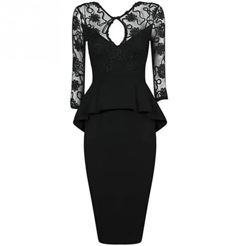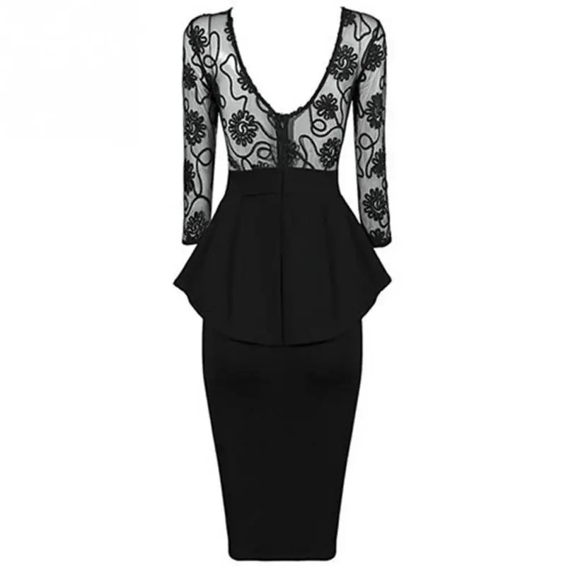 Новое Сексуальное Женское платье с круглым вырезом и цветочным кружевом, облегающее платье с баской, большие размеры