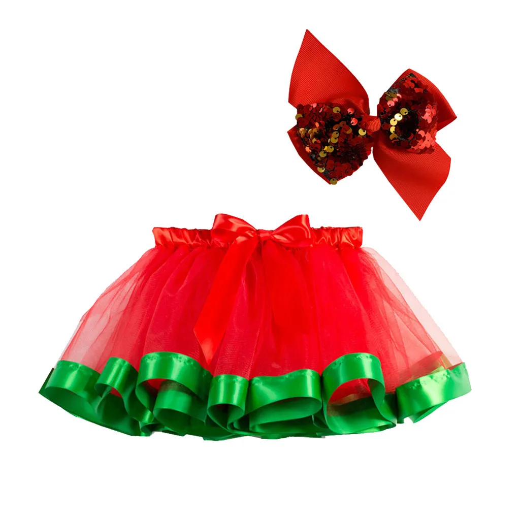 Детская юбка-пачка для девочек на Рождество и вечеринку; Танцевальный балетный костюм для малышей; Юбка + заколка с бантом