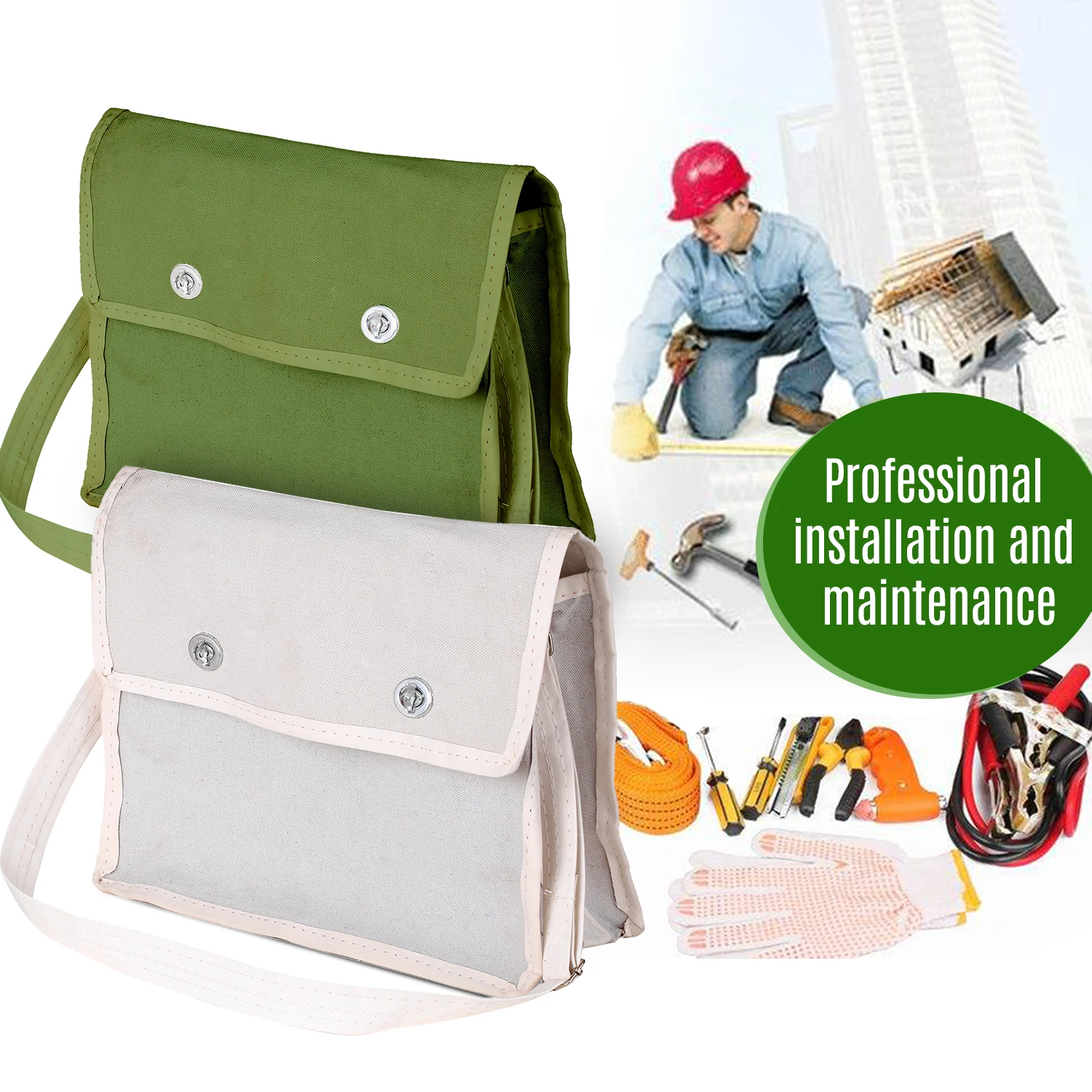 This roomy canvas bag is divided into 2 pockets, the separate pockets help to organize different type of tools, such as hand tool and electric tool.