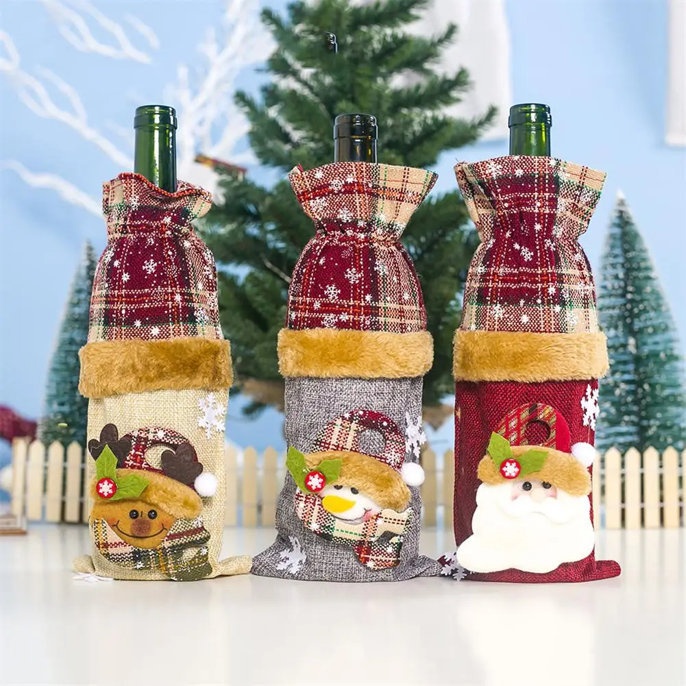 1. Особенности: уникальный льняной дизайн с рисунком снега; милый Санта-Клаус; Рождественский снеговик; Рождественский дизайн с изображением лося; милая форма.1 * Крышка для бутылки