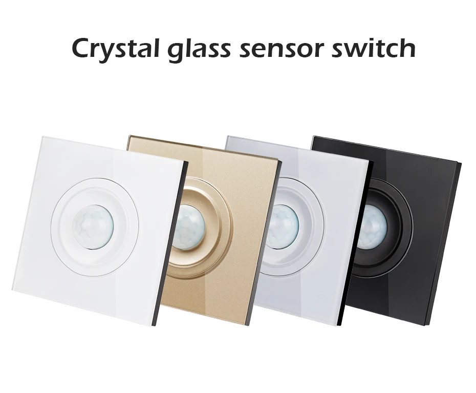 UNKAS стандарт Великобритании рыцарь белый кристалл стекло серая Панель AC 220 ~ 250V датчик движения светильник серый переключатель