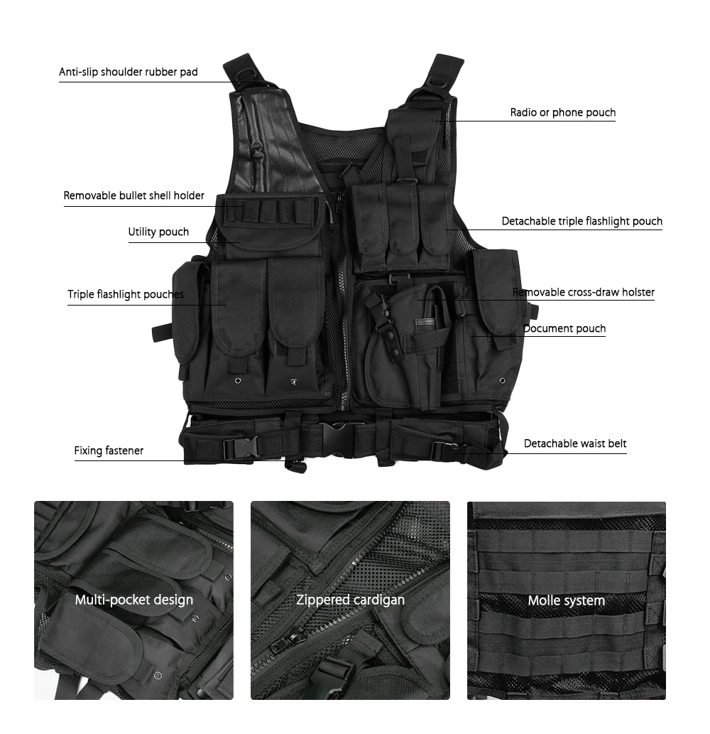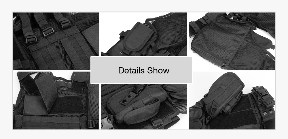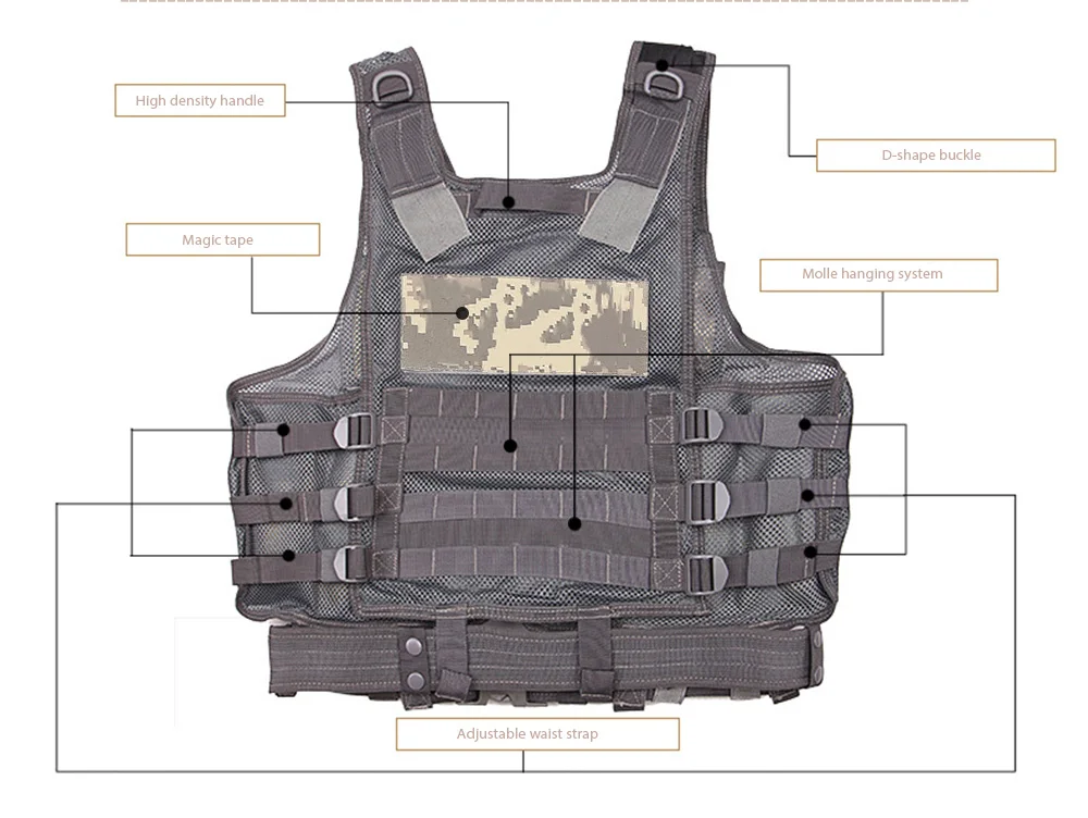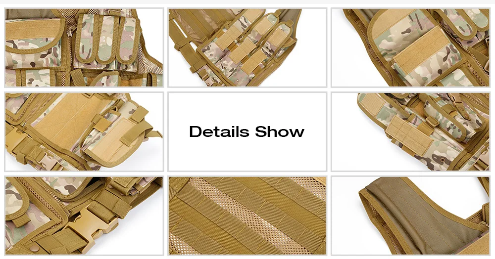 Outlife тактический жилет мужской военный тактический жилет Камуфляжный жилет бронежилет Molle открытый инвентарь для мужчин t джунгли 5 цветов Особенности: -Удобный и дышащий: Изготовлен из нейлоновой сетки и полиэфирного материала, прочный на растяжение и износостойкий, дышащий и прочный -Большой объем с различными сумками: два внутренних кармана для документов на молнии с двух сторон, внутренний разделенный слой сетчатого кармана, один съемный крест-нарисованный кобура, один радио или телефон Чехол, Один съемный тройной чехол для фонарика, тройной карман для фонарика, один мешочек для документов, Один съемный держатель для ружья, один универсальный чехол и 2 съемных подсумок, прикрепленных к Ремень -Съемный и регулируемый ремень: ремень можно снять для уменьшения веса нагрузки, а с помощью волшебной ленты и пряжки, регулируемая длина ремня составляет 90 см-120 см/35,43-47,24 дюймов, удобно и удобно носить -Регулируемые Волшебные Ленты: поясная боковая часть принимает волшебную ленту и дизайн пряжки, который позволяет носить и снимать этот тактический жилет быстро и удобно, одна большая волшебная лента на спине, чтобы прикрепить дополнительные элементы -Система Molle: сверхмощный Молле лямки на задней панели для крепления дополнительных передач и мешков, может легко носить с собой другие небольшие устройства, и с ручкой для переноски, легко носить с собой и брать в любое место -Широкое применение: с высококачественной пеной, добавляющей комфорт вашему телу. Идеально подходит для военных тренировок, тактических тренировок, стрельбы, пейнтбола, страйкбола, стрельбы, охоты и других видов активного отдыха Посылка Вес: 1,152 кг Размер продукта (Д x Ш x В): 66,00x50,00x5,00 см/25,98x19,69x1,97 дюймов Размер посылка (Д x Ш x В): 30,00x23,00x10,00 см/11,81x9,06x3,94 дюймов Посылка: Тактический Жилет Molle-1 шт.