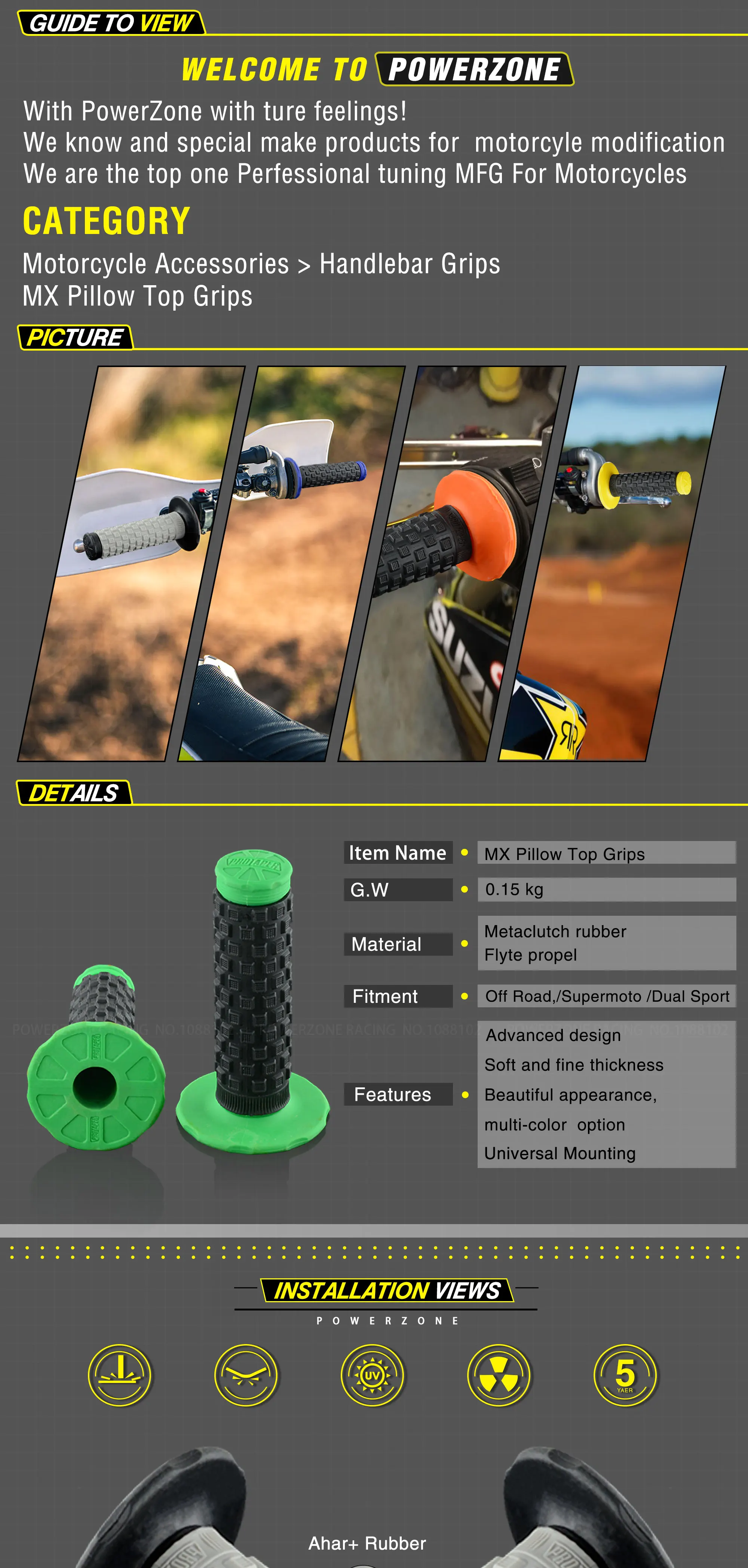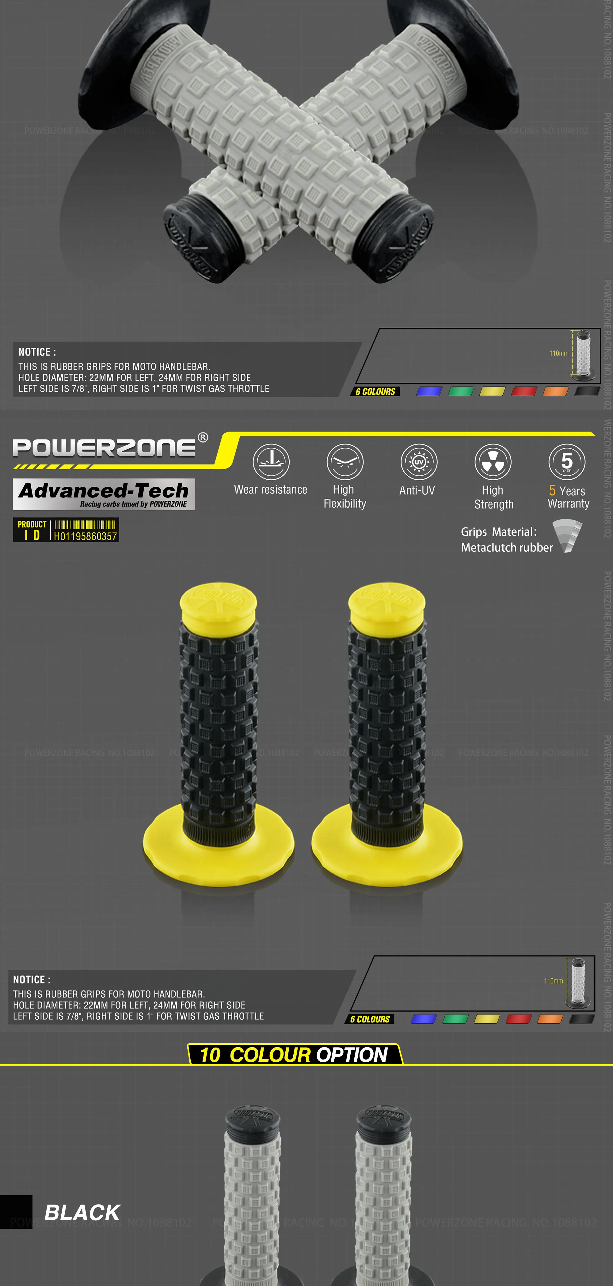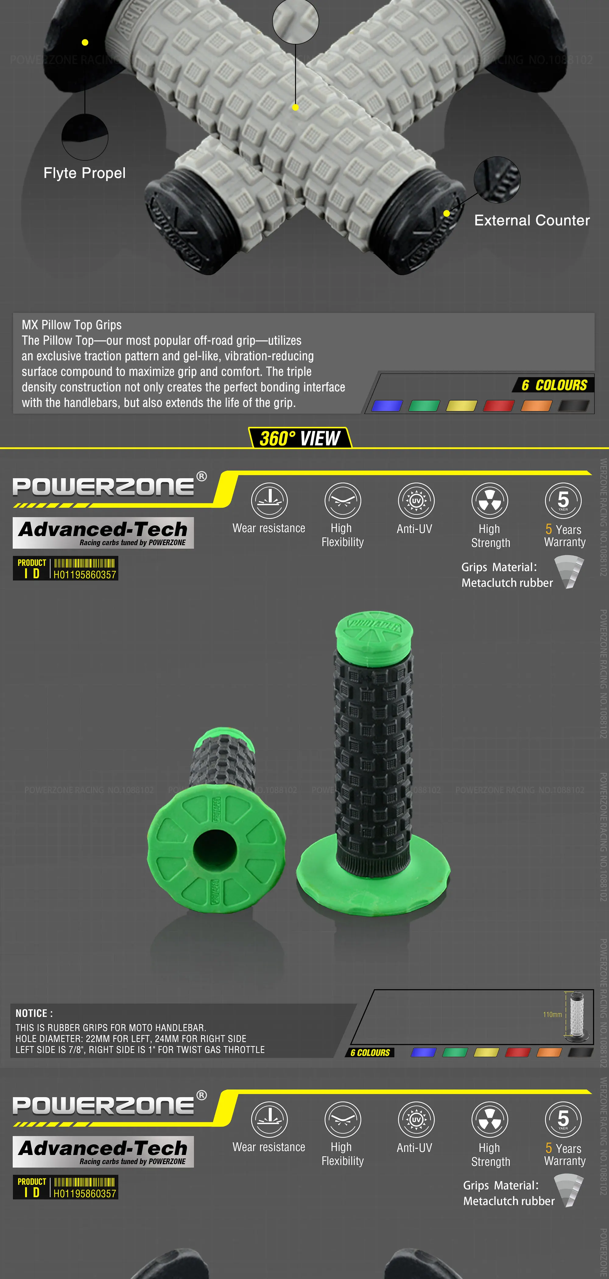 Дополнительный цвет: черный/зеленый/оранжевый/желтый/красный/синий Диаметр отверстия: 22 мм для левой, 25 мм для правой стороны Левая сторона 7/8 ", правая сторона 1" для поворота газа дроссельной заслонки Не подходит для дроссельной заслонки, как для квадроциклов, возможно, вам потребуется 2 комплекта для квадроцикла Подходит для большинства мотокроссовых велосипедов.