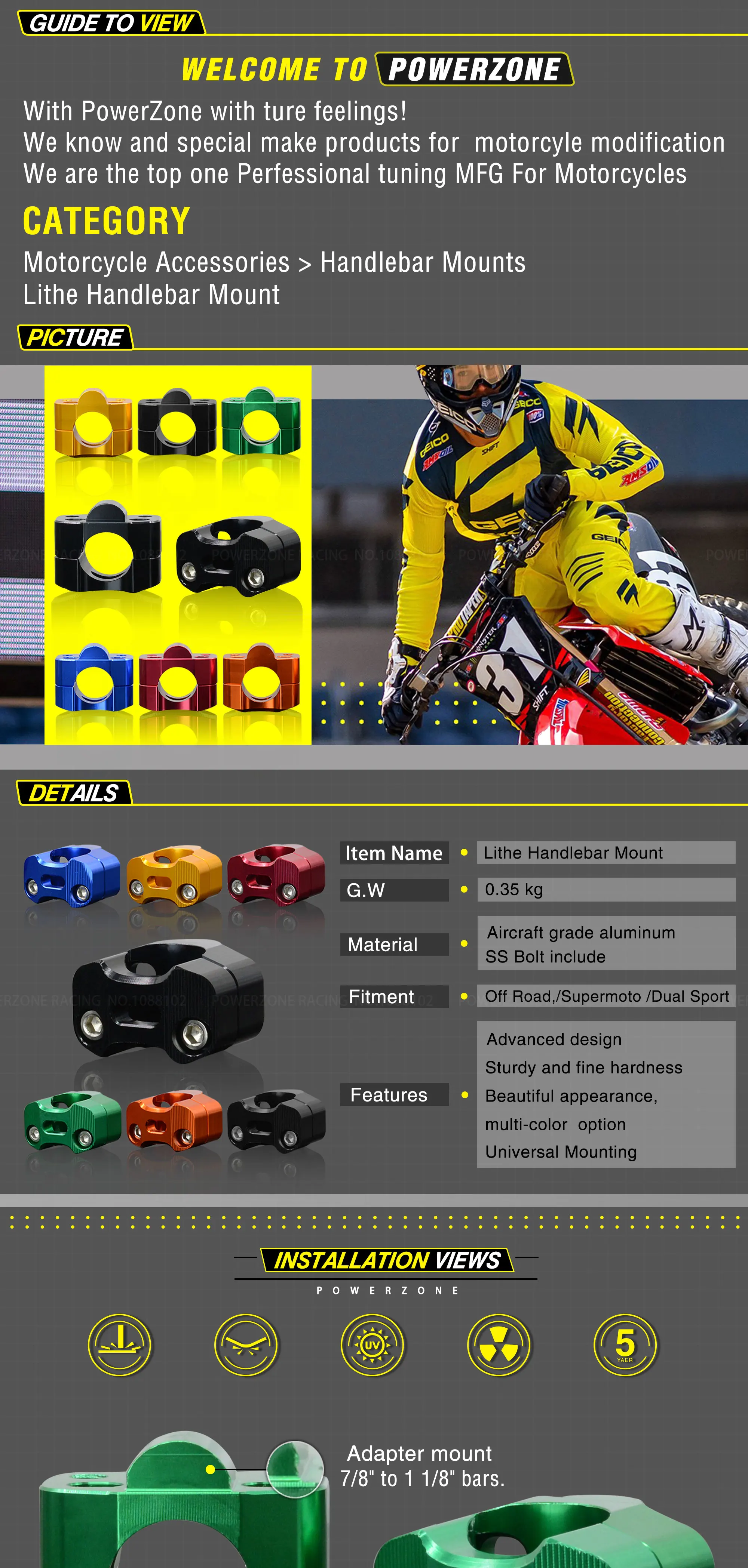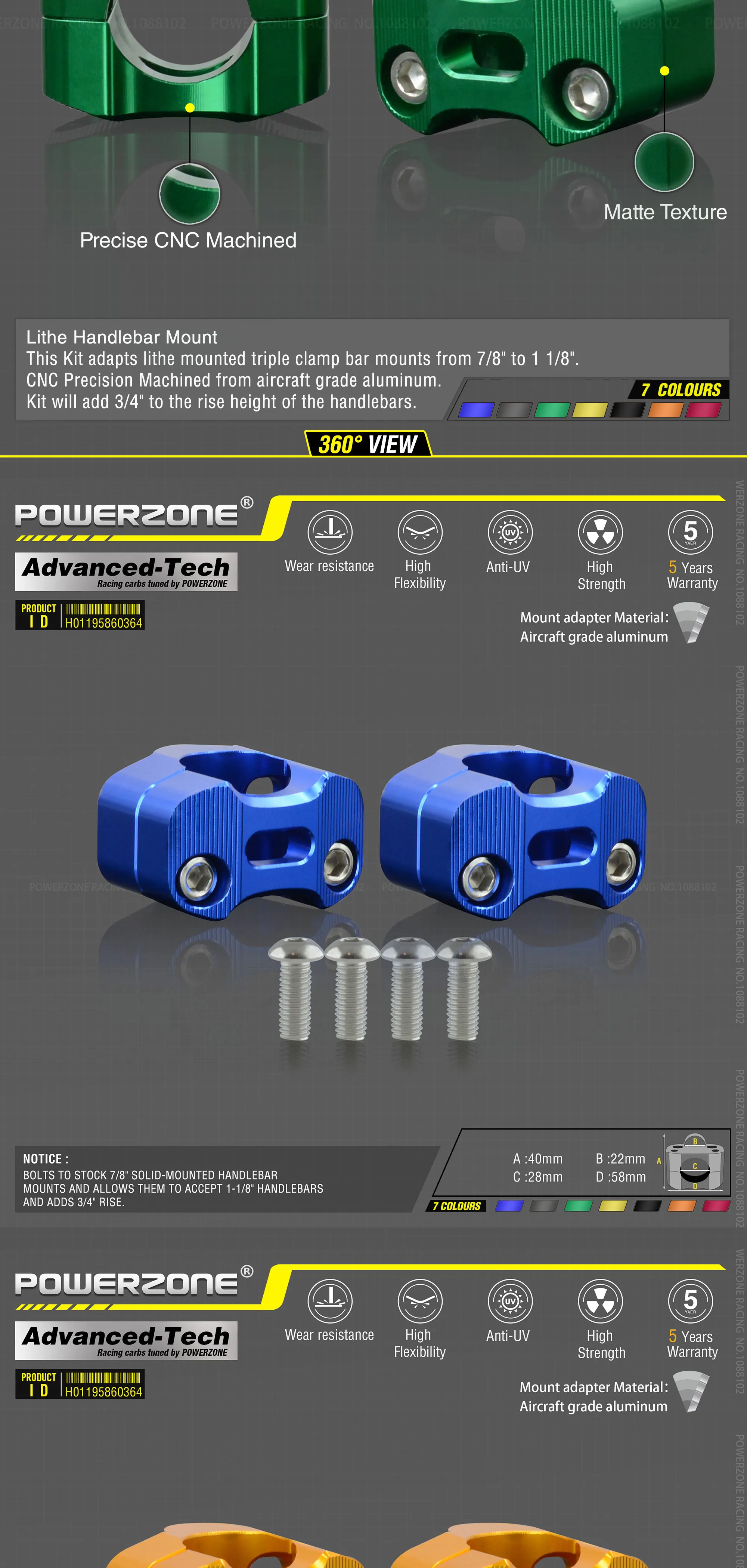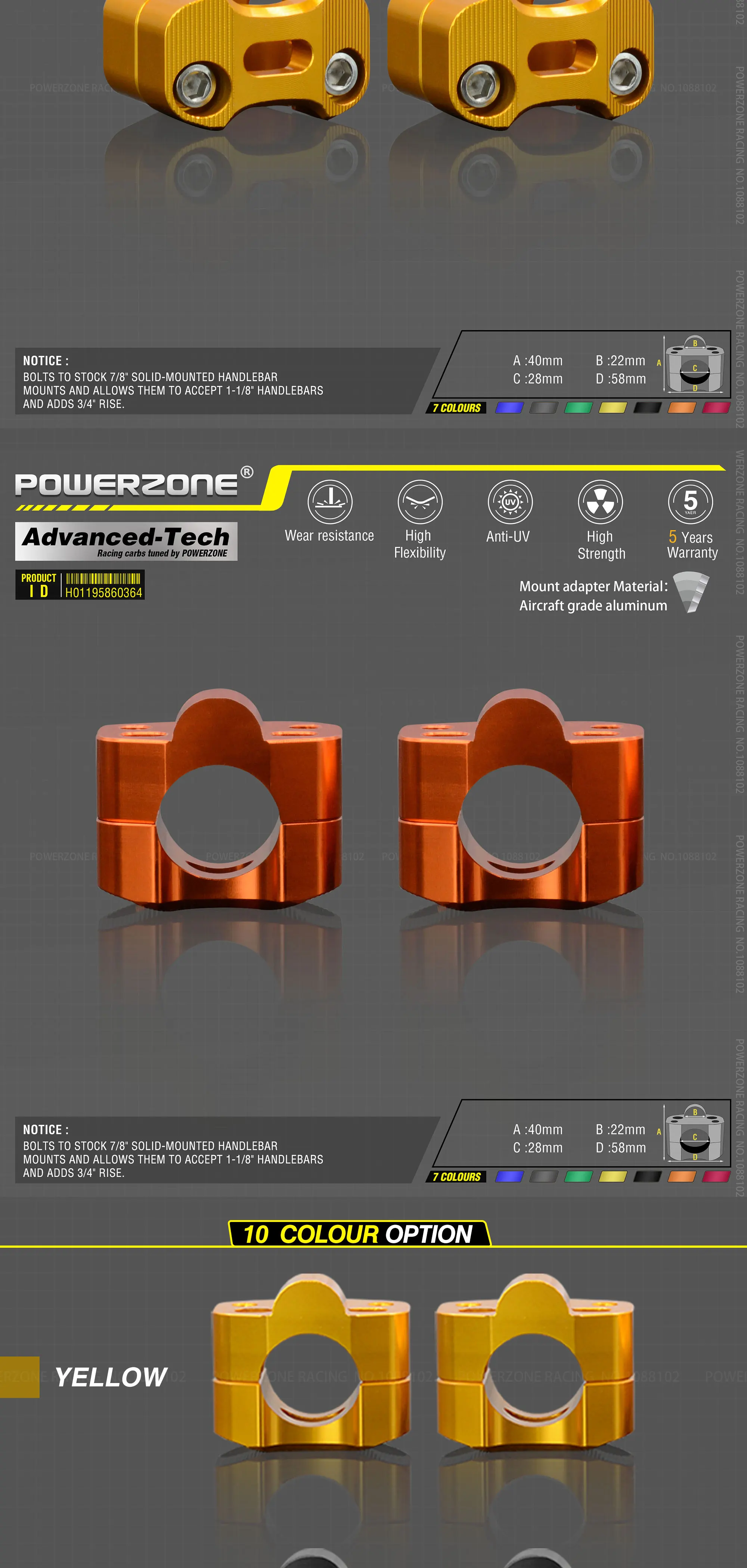 22 мм 7/8 "руль стояка.