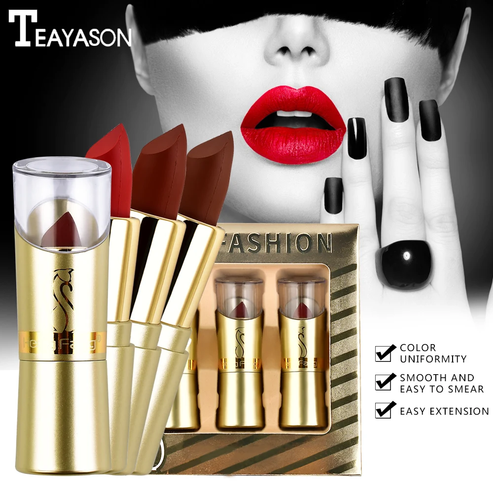 3 шт./компл. матовая губная помада от Teayason с золотой подарочной упаковкой дешевая водостойкая длительная Сексуальная Красная губная помада AM120