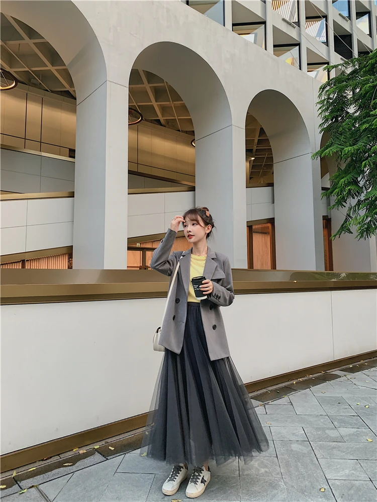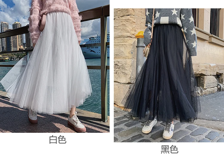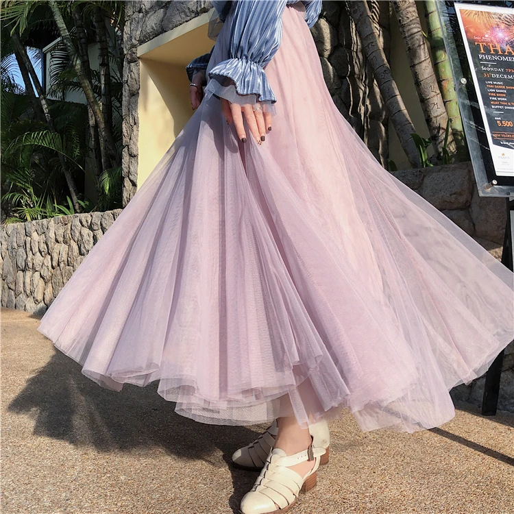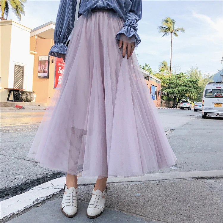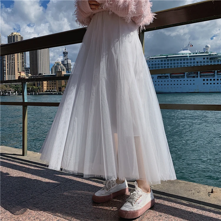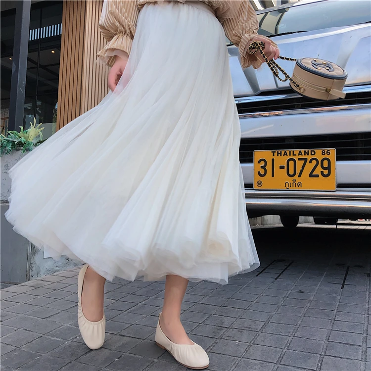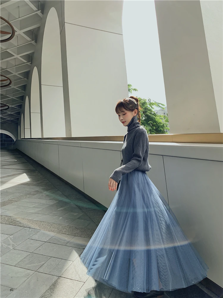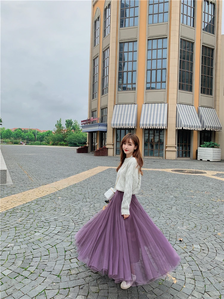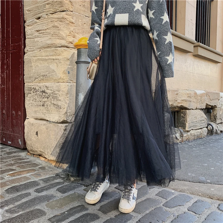 Элегантная фатиновая юбка TingYiLi, Женская широкая юбка, Корейская милая розовая зеленая серая синяя коричневая черная длинная юбка-пачка на осень и зиму