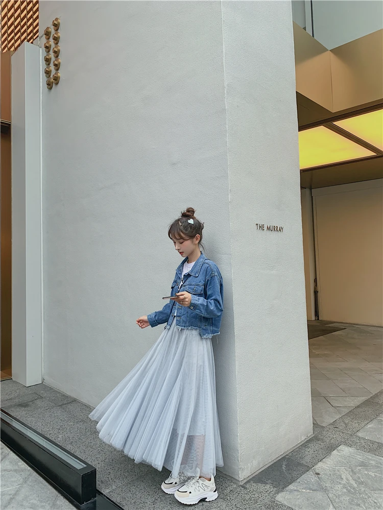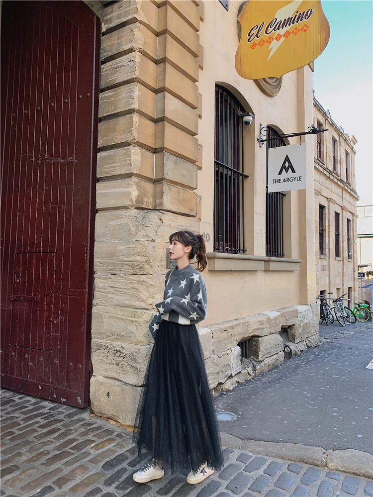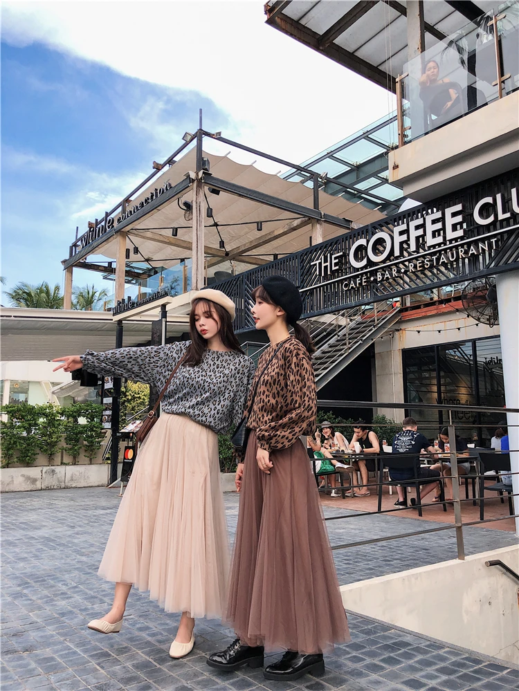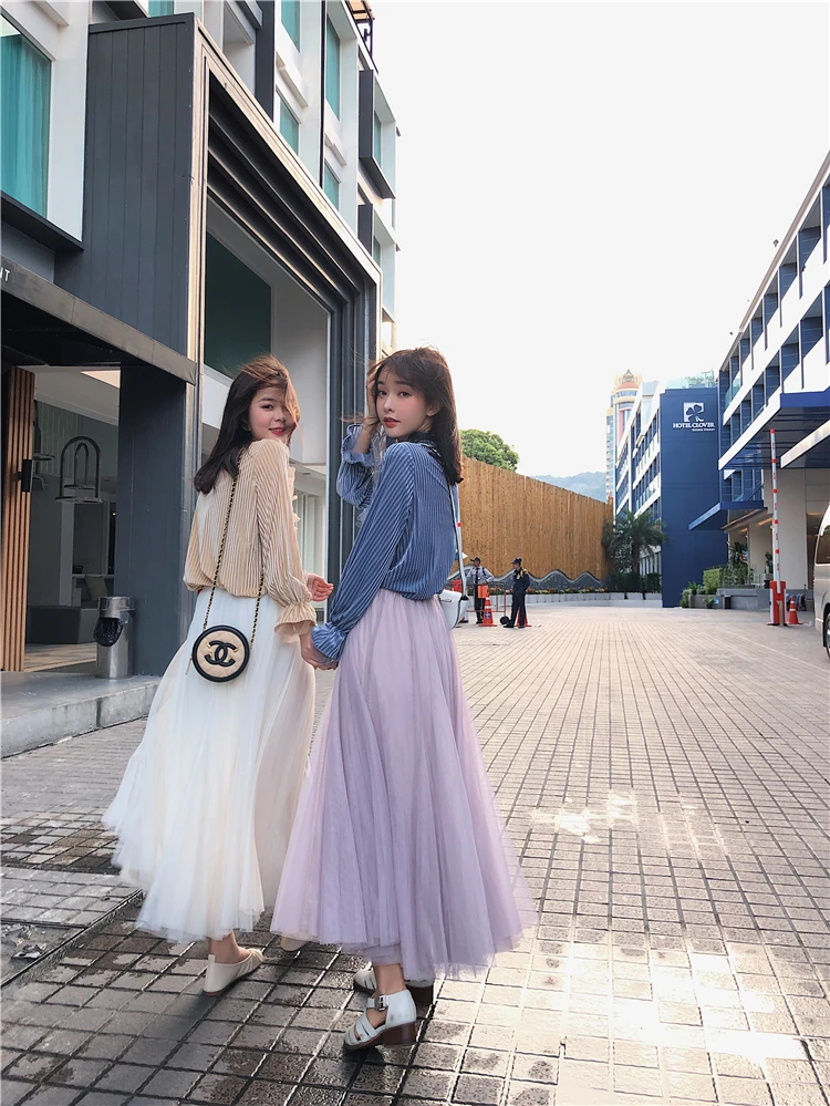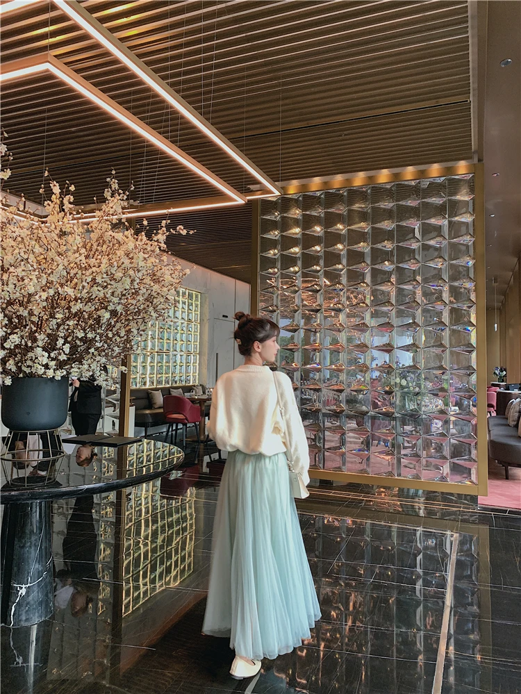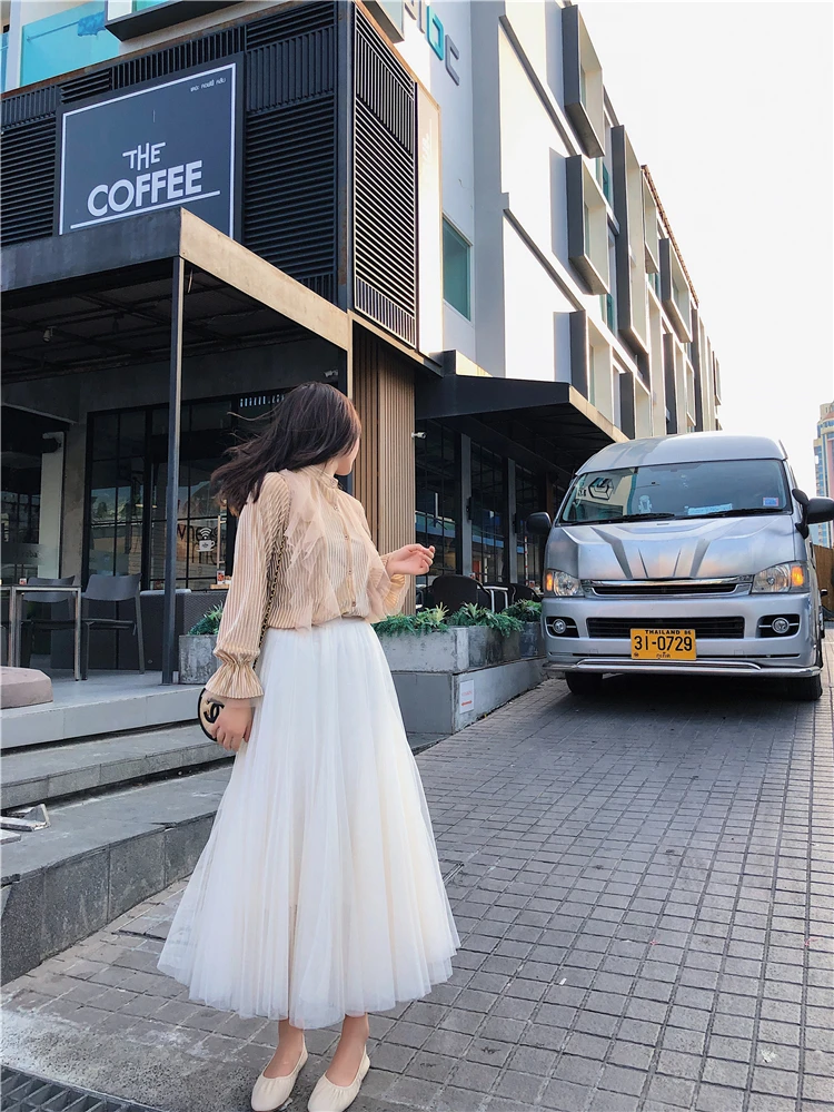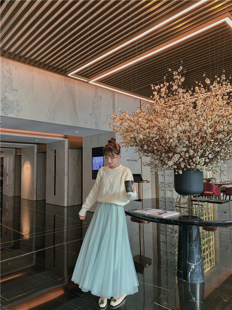 Элегантная фатиновая юбка TingYiLi, Женская широкая юбка, Корейская милая розовая зеленая серая синяя коричневая черная длинная юбка-пачка на осень и зиму