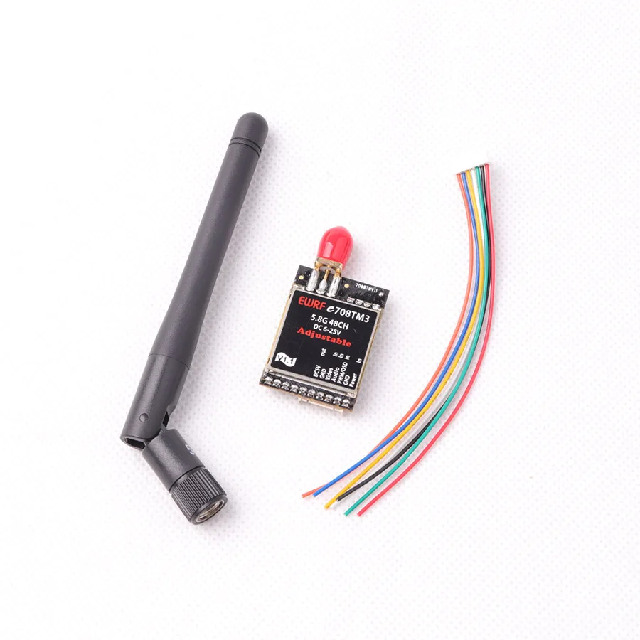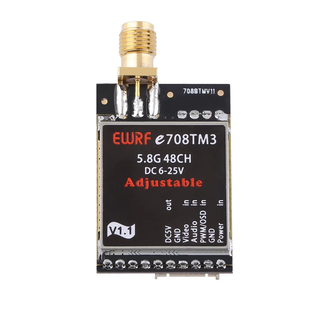 Основные Особенности Регулируемые 4 режима: 25 МВт/200 мВт/600 мВт/выкл. 5 V BEC выход для камеры, RC приемник Очистка питания и переключение каналов без помех на другие Защита от перегрева в чехол из преждевременному выходу из строя. Дополнительная защита позволяет заряжать без антенны Pitmode (отключение питания)-протестируйте и установите ваш четырехъядерный без помех для других Изменение каналов ШИМ и настройка Pitmode Beltflight OSD Настройка отключения питания, полос, каналов и Pitmode (улучшенная версия) 2-6 S Входная мощность поддерживается Технические характеристики Модель: EWRF 708M3 (с выходом 5 в постоянного тока) Частота: 5,8G 48CH Мощность передачи: 25 МВт/200 мВт/600 мВт/выкл. Источник питания: 6-25 В постоянного тока (2-6 с) Ток питания (12 В): 140мА (25 МВт)/250мА (200 мВт)/300мА (600 мВт) Выходная мощность: 5 В постоянного тока (1 а макс.) Сопротивление антенны: 50 Ом Разъем антенны: RP-SMA папа Вес: 8g Размер: 32,5*22,6*7,25 мм Руководство пользователя 1. Мощность установка Нажмите и удерживайте кнопку P, чтобы выбрать мощность 25 МВт/200 мВт/600 мВт. Используйте два коротких нажатия для включения/выключения передачи (PITMODE setting), и затем светодиодный индикатор TX будет мерцать (вкл. И ВЫКЛ. Когда питание выключено (PITMODE является эффективным), вы можете установить полосы и каналы без помех для других. Расстояние передачи AV находится только в пределах 1-2 м, когда он находится в Pitmode. Только TX светодиодный горит, когда мощность установлена на 25 МВт, оба света TX и 200 мВт светодиодный горят при установке на 200 МВт, все три света TX, 200 МВт и 600 мВт включены при установке до 600 мВт. 2. Настройка полосы и канала Нажмите и удерживайте кнопку C, чтобы выбрать полосу A-b-c-d-E-F (круг). Нажмите кнопку повторно, чтобы выбрать канал 1-8 (круг). Когда PWM порт подключен к радиоуправляемому приемнику, он может использоваться для изменения av-каналов 1-8 и для отключения передачи с помощью радиоуправляемого устройства (эффект PITMODE). Убедитесь, что есть ШИМ-сигнал от приемника в течение 3 секунд после включения питания, в противном случае передатчик возвращается к кнопке-нажмите режим настройки. Когда в режиме настройки ШИМ, точка на цифровом дисплее будет светиться Для улучшенной версии e708TM3, Betaflight/Cleanflight поддерживается установка OSD мощности, полос, каналов и Pitmode, что относится к настройке Betaflight OSD e708tm3' для получения подробной информации.