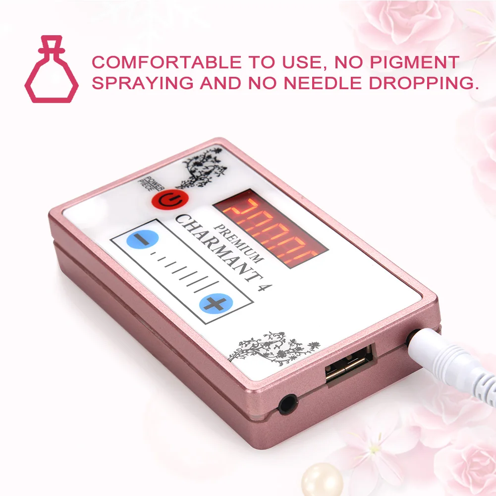 Более мощная сила, используется для линий, бровей, губ, МТС и гидролифтинга. И скорость может быть отрегулировано. Низкий уровень шума, быстрое затенение, уменьшает напряжение и боль клиентов. Эта микроблейдинг-машина удобна в использовании, без пигментного распыления и капель иглы.