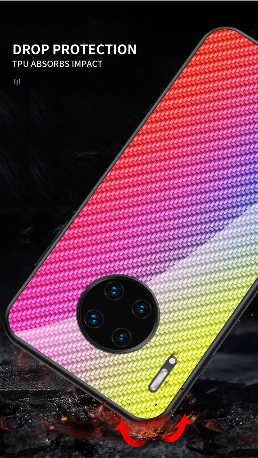 Glass Phone Cover Case For Huawei P Smart P10 P20 P30 Mate 9 10 20 30 Pro Lite Honor Play 8X 8 10 Lite 20 Pro Carbon Fiber Cases