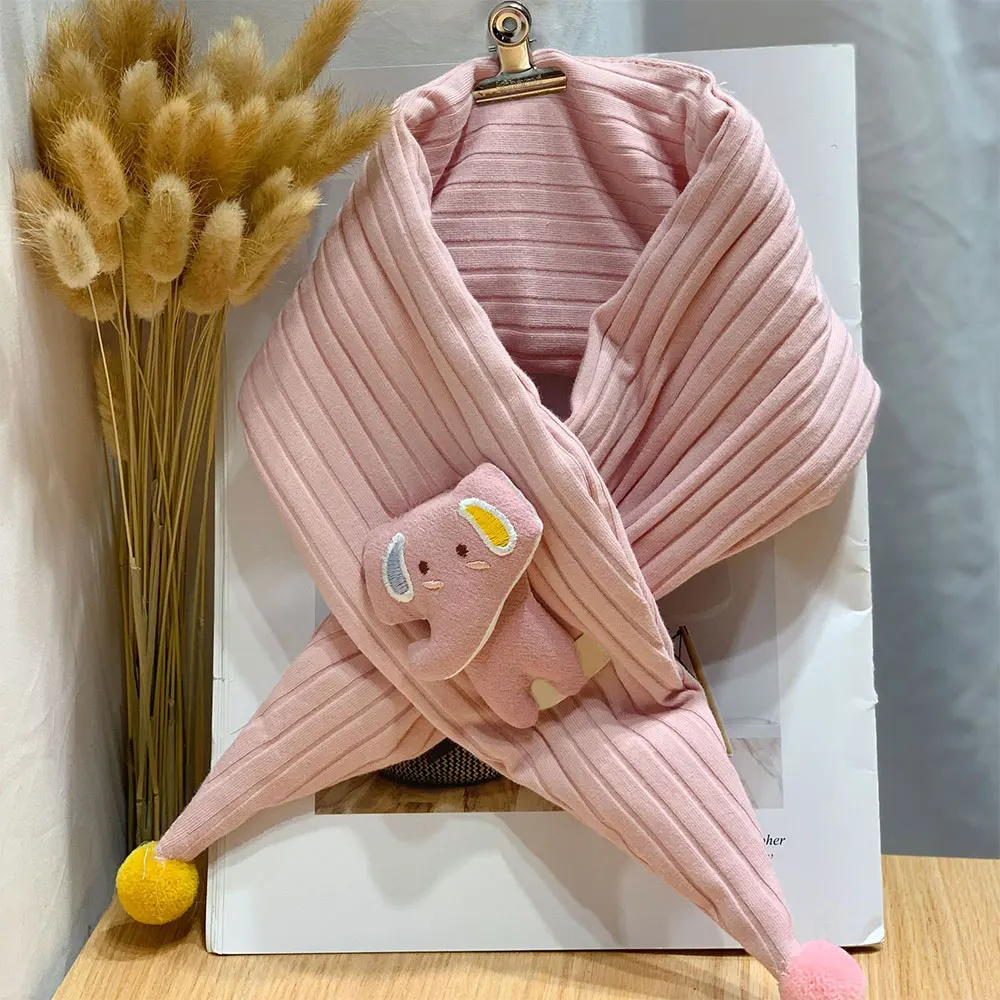 Осенний детский шарф, зимний плюшевый шарф для маленьких девочек, теплые шарфы с круглым вырезом для детей, Детский шарф с перекрестным воротником, шарфы С Рисунком Слона