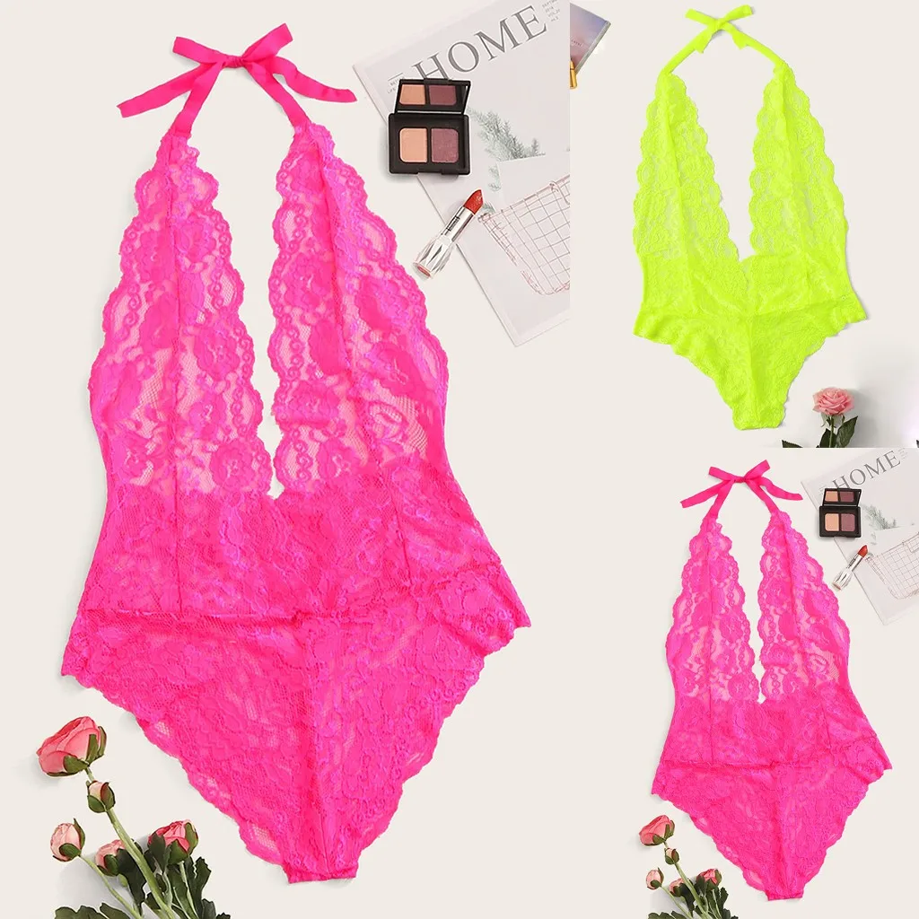 Для женщин сексуальные кружева сексуальное нижнее белье с глубоким v-образным вырезом нижнее белье-комбинезон с открытой спиной, купальный костюм, одежда для сна