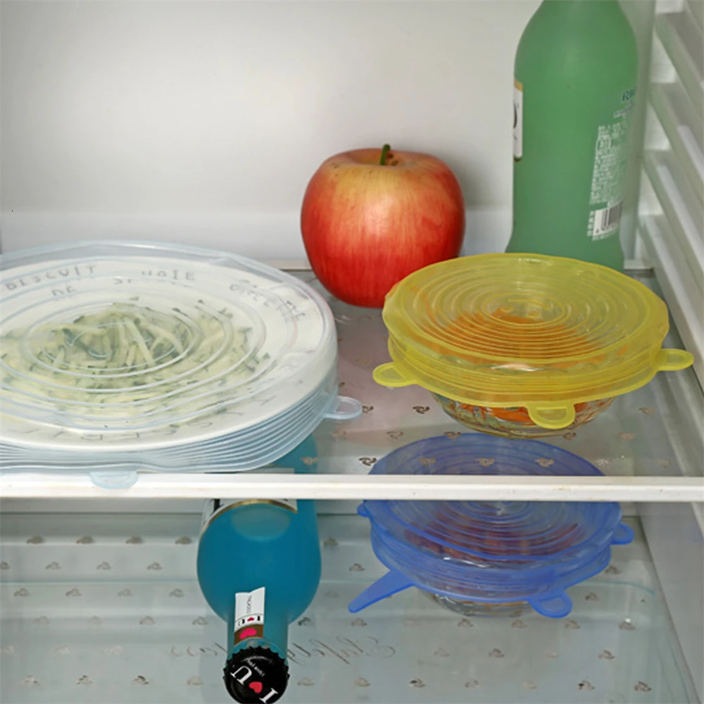 6 шт./компл. силиконовые эластичные крышки Универсальная крышка Силиконовая пищевая оберточная чаша крышка кастрюля силиконовая крышка сковорода кулинарные кухонные принадлежности
